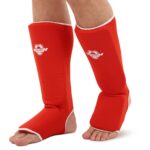 Упругие вставки из пенополиуретана на передней части голени и подъеме стопы позволяют гасить даже самые жесткие удары. Плотный чулок идеально сидит на ноге и дополнительно фиксируется за счет липучки в верхней части изделия – это не позволяет защите сползать или перекручиваться в течение всего поединка. Аксессуар может использоваться в тренировочных и показательных боях в таких единоборствах как кикбоксинг, тайский бокс, каратэ.