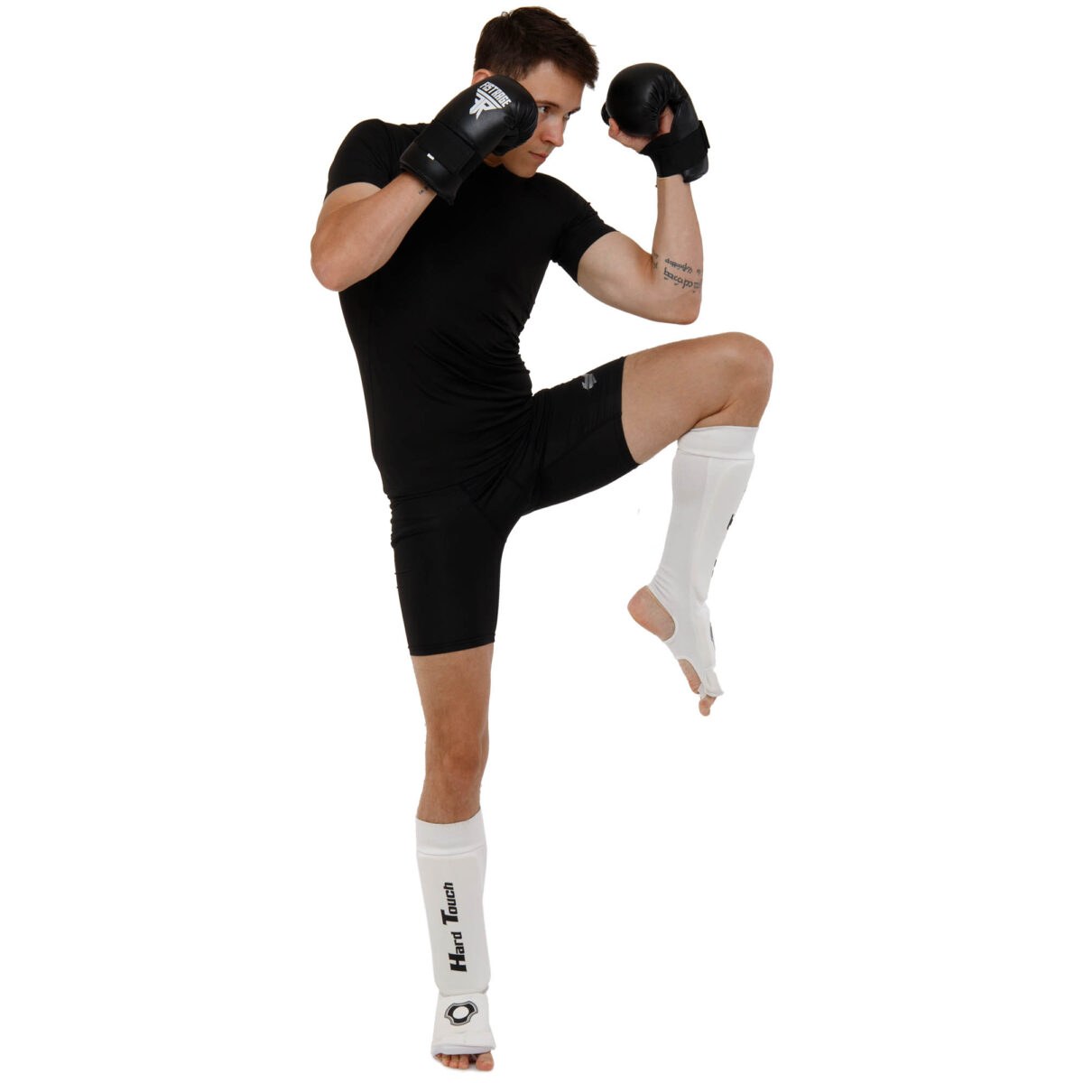 Упругие вставки из пенополиуретана на передней части голени и подъеме стопы позволяют гасить даже самые жесткие удары. Плотный чулок идеально сидит на ноге и дополнительно фиксируется за счет липучки в верхней части изделия – это не позволяет защите сползать или перекручиваться в течение всего поединка. Аксессуар может использоваться в тренировочных и показательных боях в таких единоборствах как кикбоксинг, тайский бокс, каратэ.
