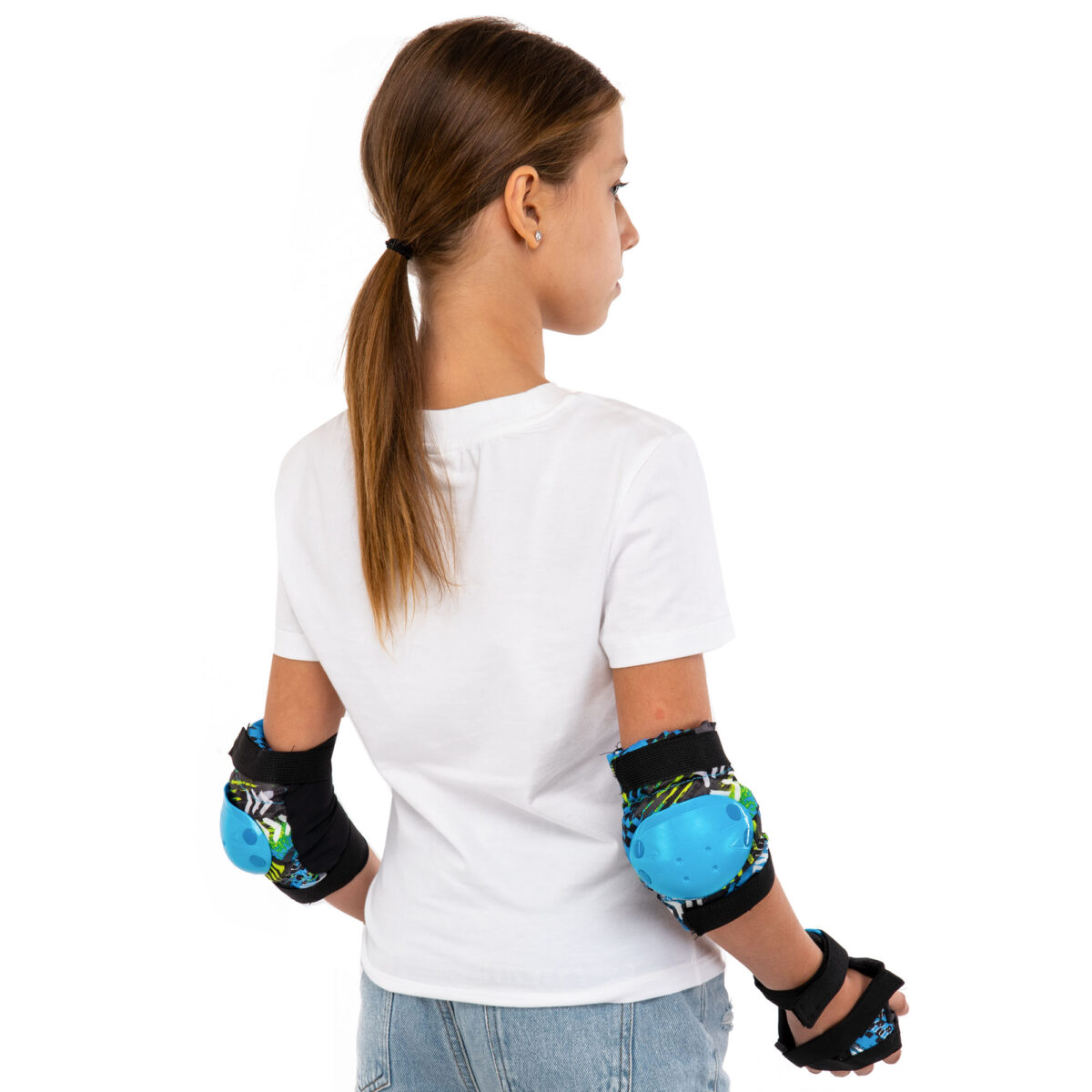 Налокотники оснащены аналогичными защитными накладками из полипропилена, которые защищают локти от травм при падениях. Они обеспечивают отличное сочетание жесткости и гибкости, позволяя свободно двигать руками, не испытывая дискомфорта. Полиэстеровая текстильная часть создает оптимальный микроклимат для кожи, предотвращая перегрев и раздражение. Эластичные ремешки плотно фиксируют налокотники на руках, не стягивая и не ограничивая движения, что особенно важно при активном катании.