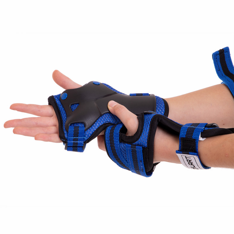 Элементы защиты легко надеваются и фиксируются на конечностях ребенка с помощью липучек. Печатки прикрывают предплечья и ладони. Наколенники и налокотники защищают суставы от повреждений случае падения. Мягкая подкладка амортизирует и не натирает, а жесткий материал верха принимает на себя основной удар.