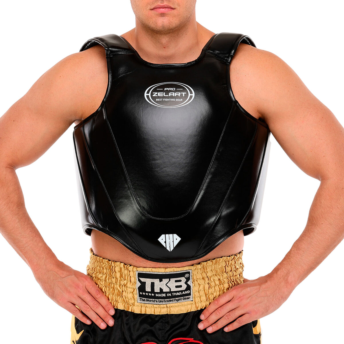 Полиуретановый жилет для защиты корпуса ZELART позволяет тренеру безопасно принимать удары без риска травмироваться. Защита используется во многих ударных практиках и позволяет отрабатывать удары в корпус руками и ногами.