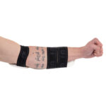 Просто наденьте защиту на руку (резинка посредине не даст ей сразу же сползти), а затем закрепите у кисти и локтя еще на две резинки с липучками на конце. Затягивайте их плотно, но не туго, тогда изделие не будет перекручиваться и сползать, но вместе с тем и не передавит ток крови и кожу.