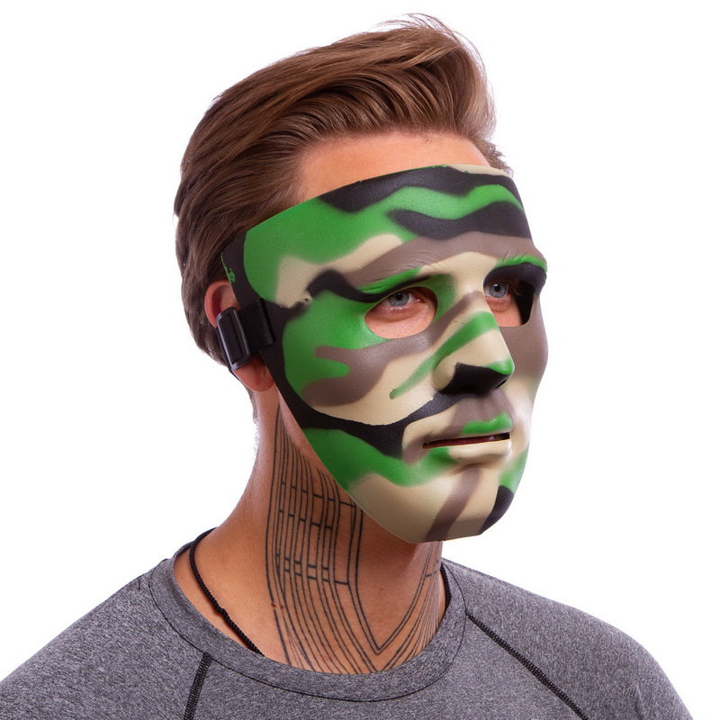 Эта маска предназначена для защиты лица от пейнтбольных/страйкбольных шариков, попадание которых может быть довольно болезненным. Более того, после них на лице могут остаться неприятные синяки, поэтому использовать маску желательно всем игрокам, независимо от того насколько подготовленными они себя считают. Тем более что она абсолютно не мешает обзору, не сбивается и не сползает во время движений и при этом довольно стильно смотрится. Кстати, следует помнить, что маску желательно дополнить защитными очками.