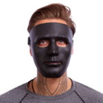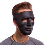 Маска выполнена таким образом, чтобы её форма анатомически соответствовала среднему человеческому лицу – нос, скулы, подбородок. Поэтому она без труда подойдёт практически любому пользователю. Для изготовления маски используется высококачественный пластик, отличающийся лёгкостью и устойчивостью к ударам. Прорези для глаз обеспечивают игроку хороший обзор, а щель напротив рта – достаточный приток воздуха. Фиксируется маска с помощью эластичного ремня, оснащённого механизмом регулировки, что позволяет отрегулировать его в соответствии с размером головы игрока.