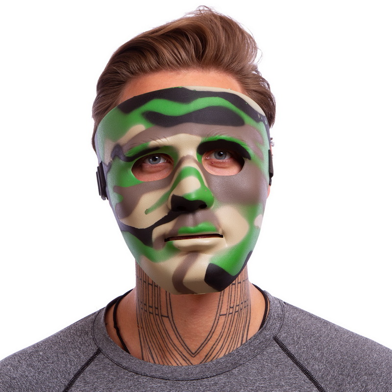Эта маска предназначена для защиты лица от пейнтбольных/страйкбольных шариков, попадание которых может быть довольно болезненным. Более того, после них на лице могут остаться неприятные синяки, поэтому использовать маску желательно всем игрокам, независимо от того насколько подготовленными они себя считают. Тем более что она абсолютно не мешает обзору, не сбивается и не сползает во время движений и при этом довольно стильно смотрится. Кстати, следует помнить, что маску желательно дополнить защитными очками.