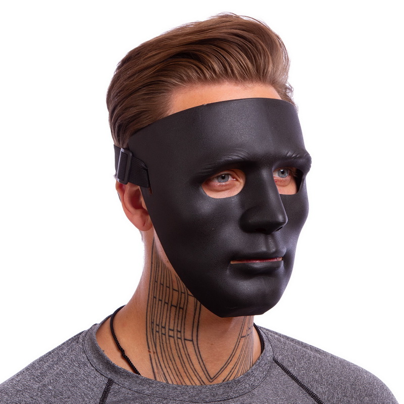 Маска выполнена таким образом, чтобы её форма анатомически соответствовала среднему человеческому лицу – нос, скулы, подбородок. Поэтому она без труда подойдёт практически любому пользователю. Для изготовления маски используется высококачественный пластик, отличающийся лёгкостью и устойчивостью к ударам. Прорези для глаз обеспечивают игроку хороший обзор, а щель напротив рта – достаточный приток воздуха. Фиксируется маска с помощью эластичного ремня, оснащённого механизмом регулировки, что позволяет отрегулировать его в соответствии с размером головы игрока.