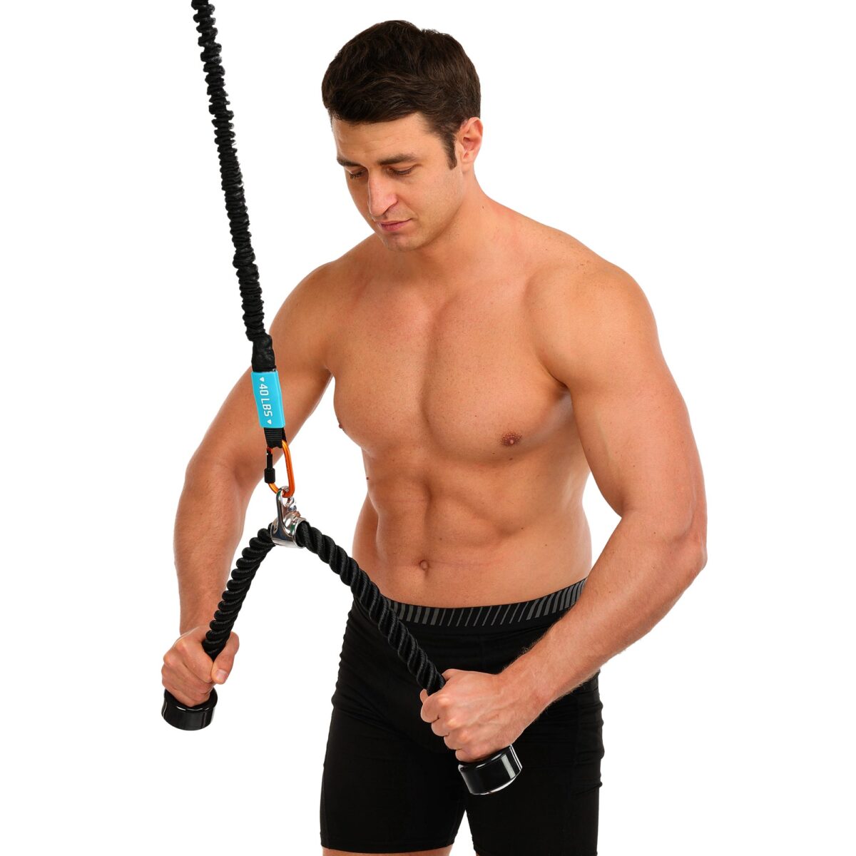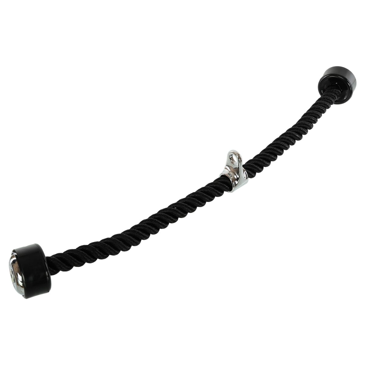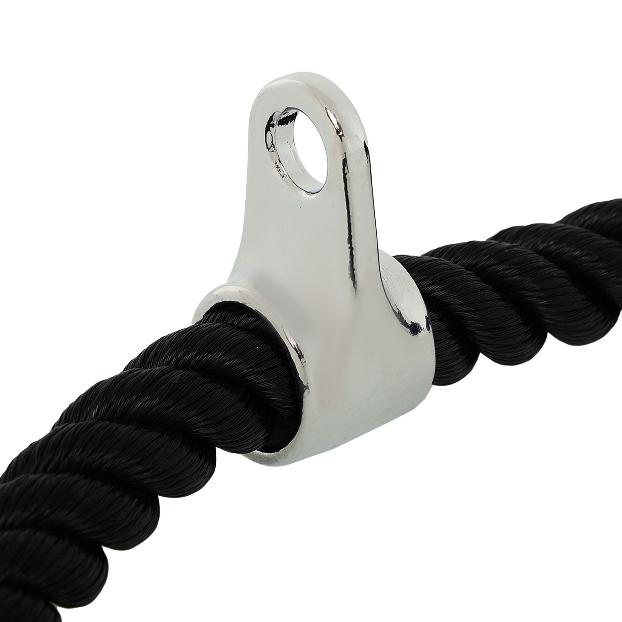 Трос изготовлен из нейлона. Общая длина каната составляет 700 мм. Весит такой снаряд 725 г. Для крепления к тросу блочного тренажера предусмотрен подвес из нержавеющей стали.