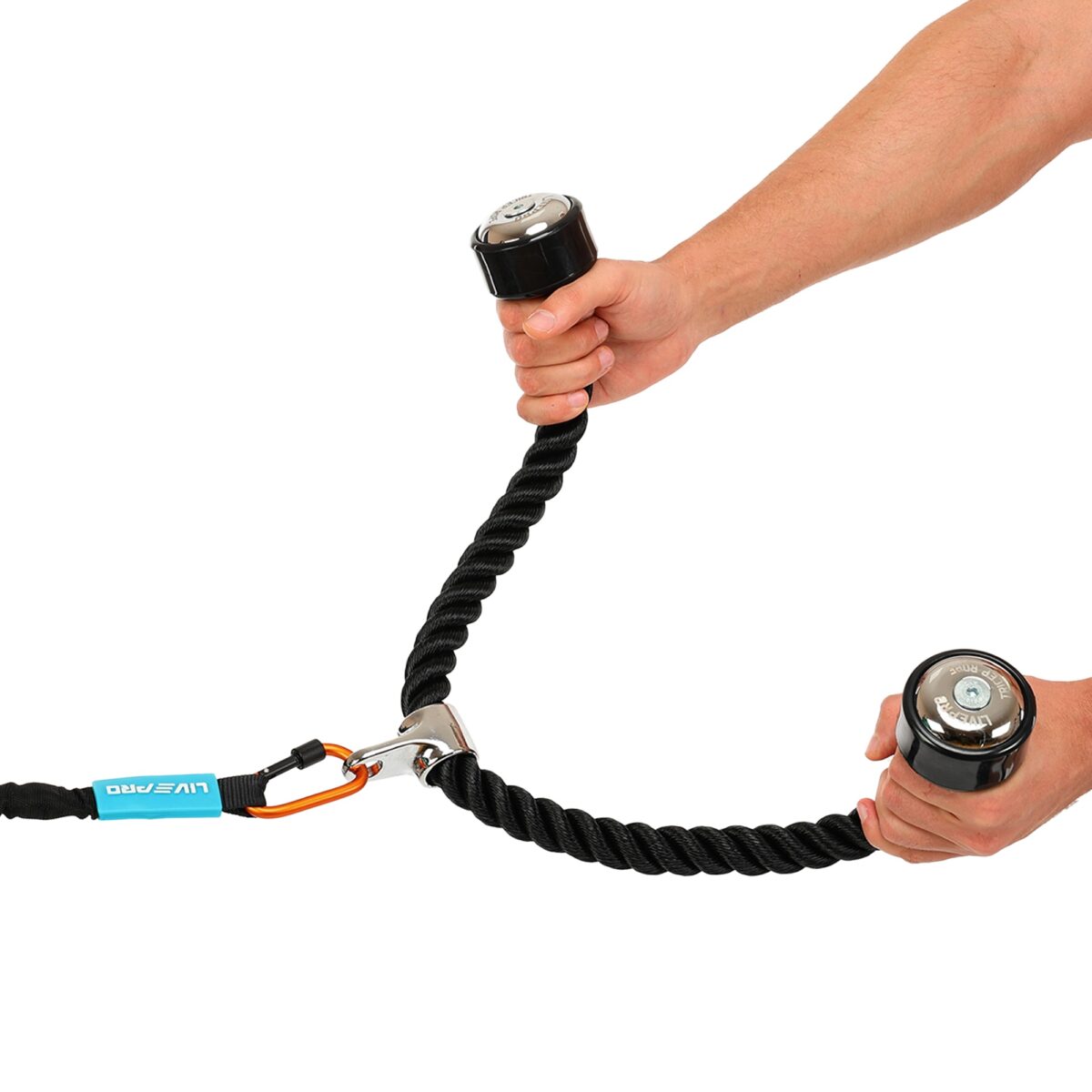 Канат для блочного тренажера имеет двойной хват и предназначен для выполнения тяговых упражнений на трицепс. Этот аксессуар от бренда LiveUp предназначен для оборудования профессиональных залов.