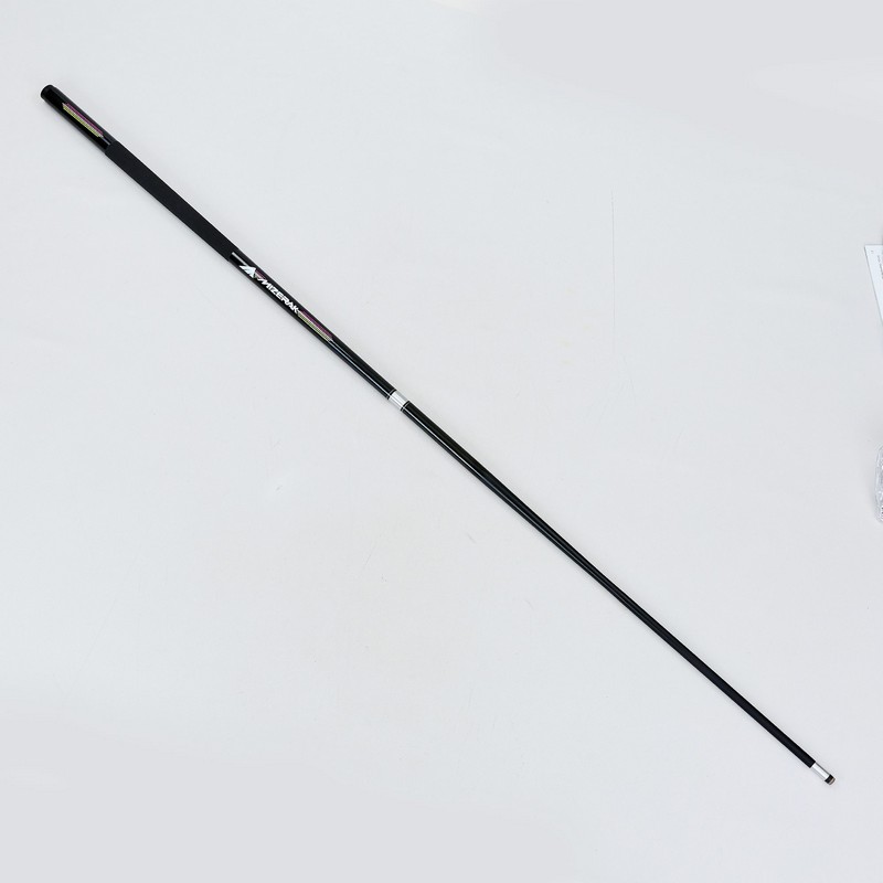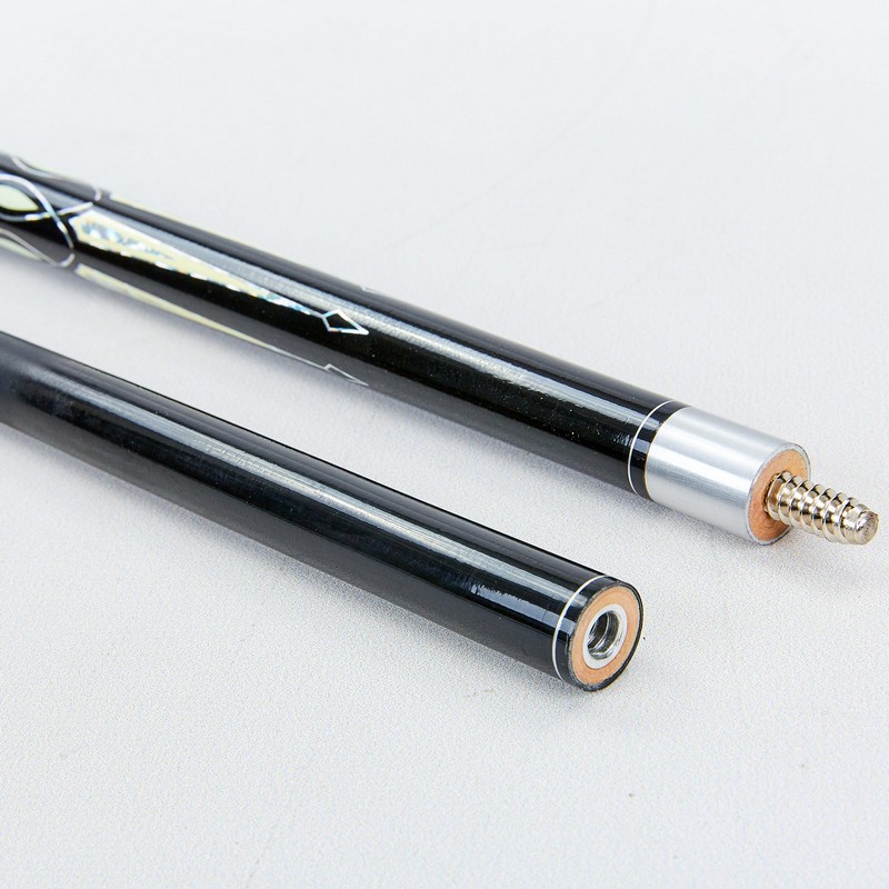 Общая длина кия — 160 см. Диаметр ударного наконечника составляет 13 мм. Двусоставный кий гасит вибрации, обеспечивает стабильность и точность каждого удара. Оптимальную защиту обеспечивают специальная накладка из кожи на наконечнике и феруле. Чтобы кий не повреждался в вертикальном положении, на конце турняка закреплен толстый резиновый бампер.