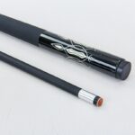 Кий выполнен в стильном современном дизайне. Шафт сохраняет натуральный цвет клена, а на турняк нанесен оригинальный рисунок. Вся длинна изделия покрыта лаком и отполирована, на турняке есть обмотка с шершавой поверхностью для лучшего хвата.