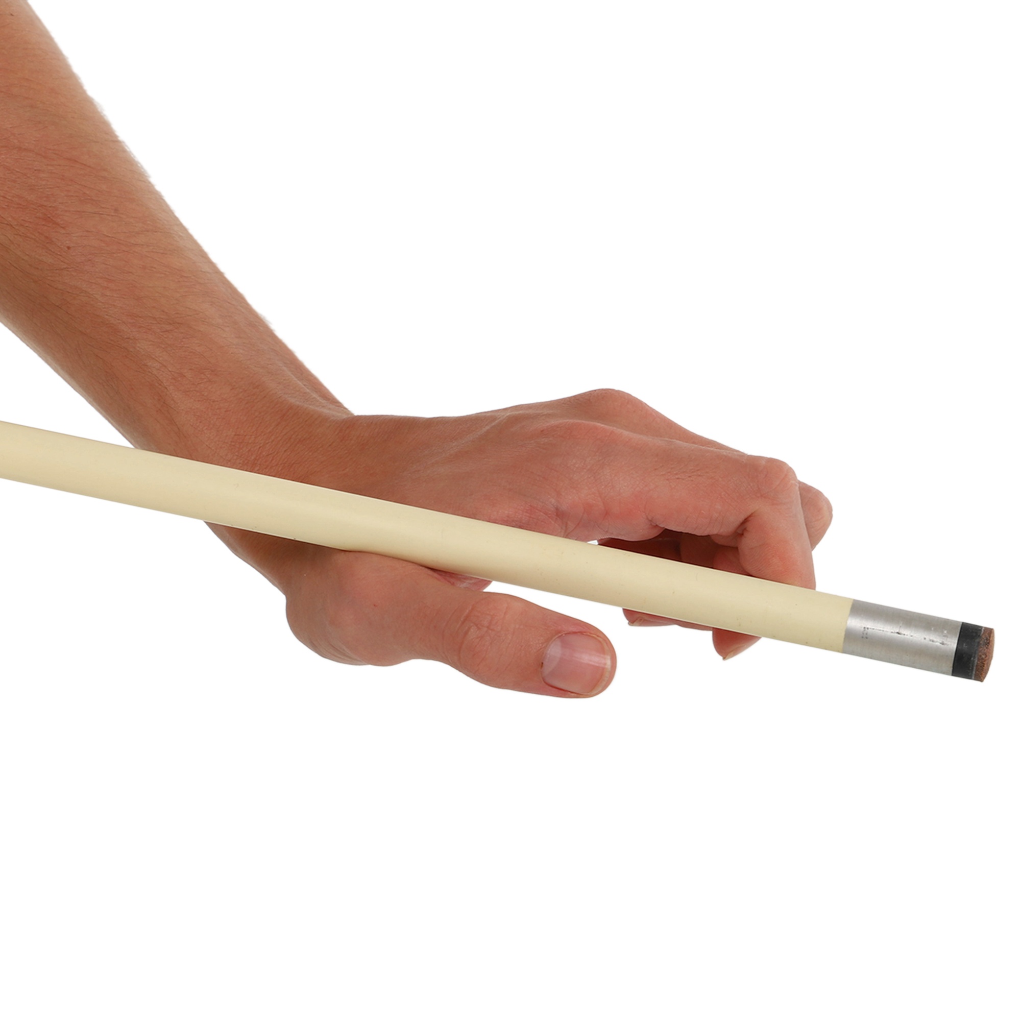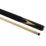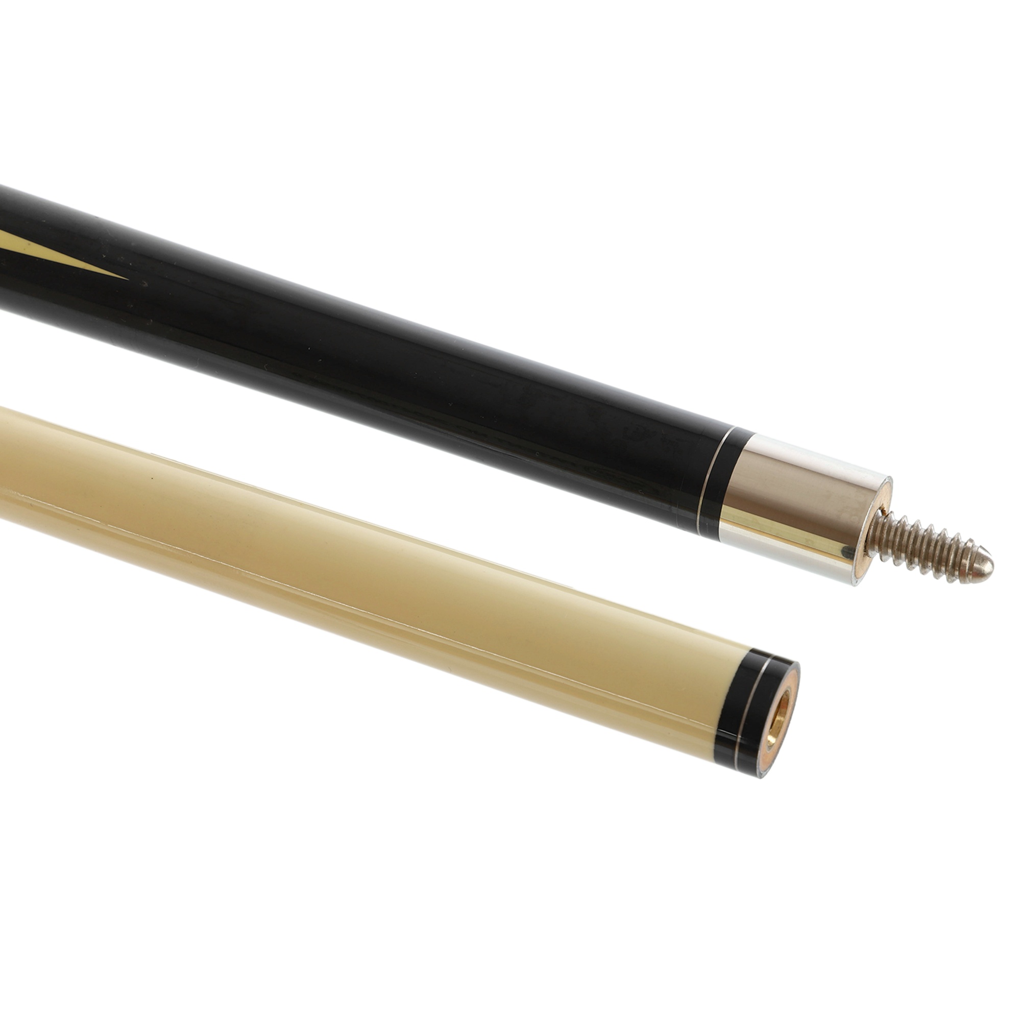 Разборной двусоставный кий изготовлен из прочной древесины канадского клена, что обеспечивает его надежность и долговечность. Шафт (тонкая часть кия) и турняк (более толстая часть) имеют соотношение ½ и соединены винтовым методом. Прочный латунный винт идеально подогнан по размеру к резьбовой втулке. Длина снаряда составляет 160 см, диаметр ударного наконечника — 13 мм. Баланс кия обеспечивает более точный контроль.