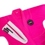 Воротник куртки утолщен и многократно прошит. За счет такой конструкции он меньше давит на шею во время поединка. Увеличенная толщина воротника также мешает противнику провести качественный захват.