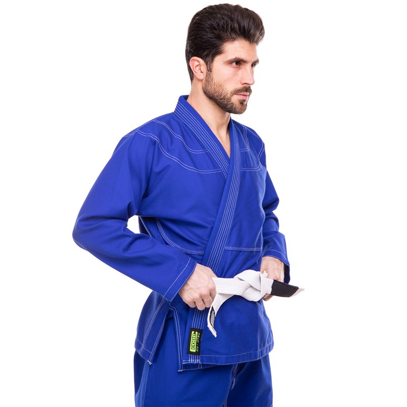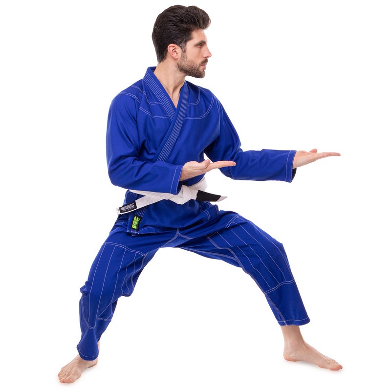 Кимоно имеет усиления в местах, наиболее подверженных износу. Куртка прошита двойным швом на спине, локтях, манжетах. Воротник утолщен и прошит несколькими рядами строчки. Он не давит в шею во время схватки, и противнику сложнее удержать его в захвате. На штанах усиливающая прошивка покрывает область коленей и нижний срез.