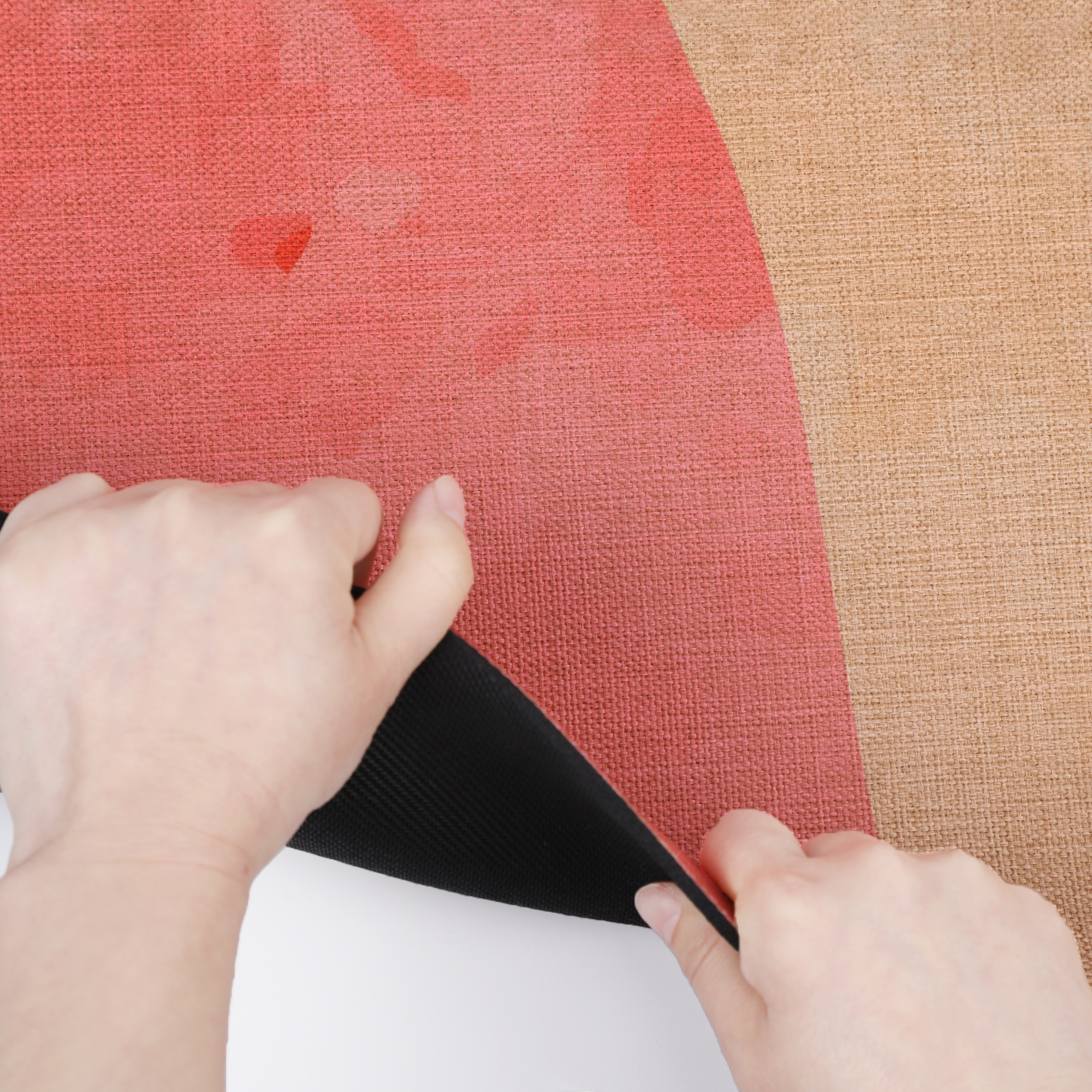 Коврик имеет две стороны: льняной верх с оригинальным рисунком и низ из натурального каучука с добавлением волокон джута. Благодаря тканевой поверхности, коврик впитывает влагу, что является огромным преимуществом по сравнению с другими ковриками. Каучук обладает отличными противоскользящими свойствами, не электризуется, не пропускает холод от пола и не хранит запах. Джут придаёт дополнительный вес и прочность, значительно увеличивая срок службы изделия.