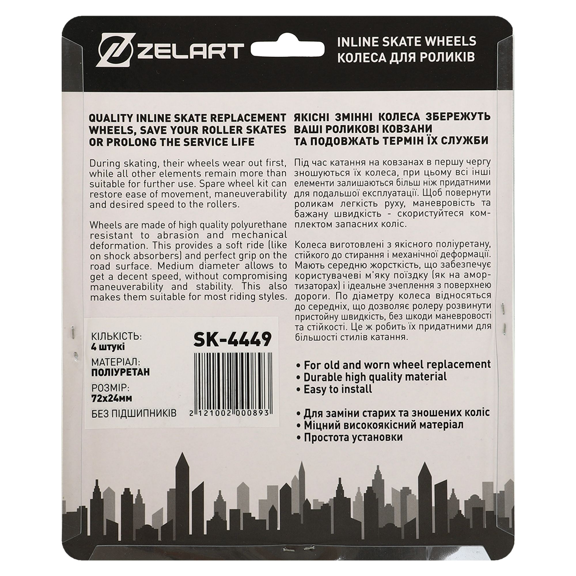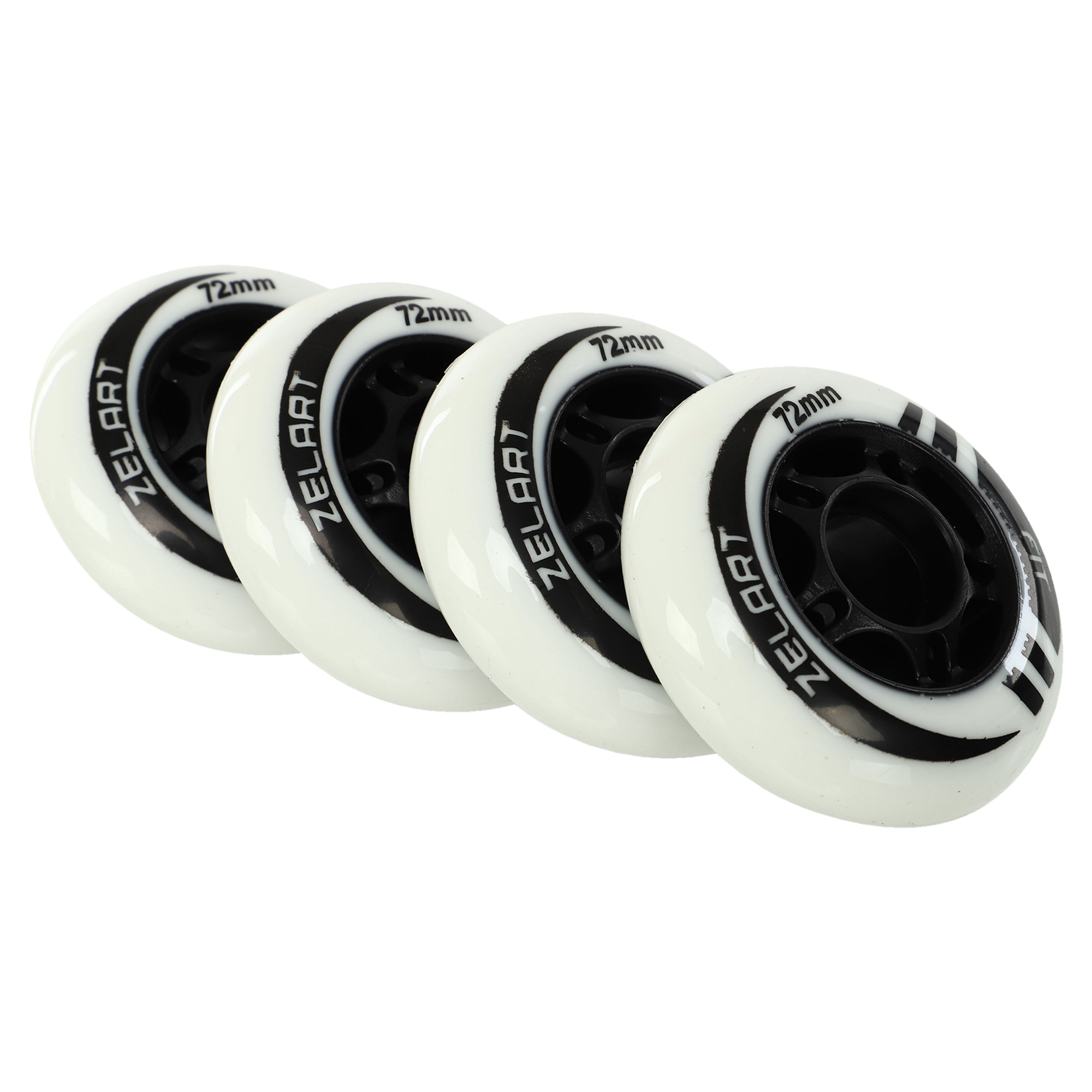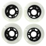 Колёса изготовлены из качественного полиуретана, устойчивого к истиранию и механической деформации. Их высокие эксплуатационные показатели обусловлены оптимальной жёсткостью – 82А. Это обеспечивает пользователю мягкую поездку (как на амортизаторах) и идеальное сцепление с поверхностью дороги. По диаметру колёса относятся к средним, что позволяет роллеру развить приличную скорость, без ущерба маневренности и устойчивости. Это же делает их пригодными для большинства стилей катания. Посадочное место для подшипников в ступицах имеет стандартные размеры, поэтому колёса подходят для большинства роликов, представленных на рынке.