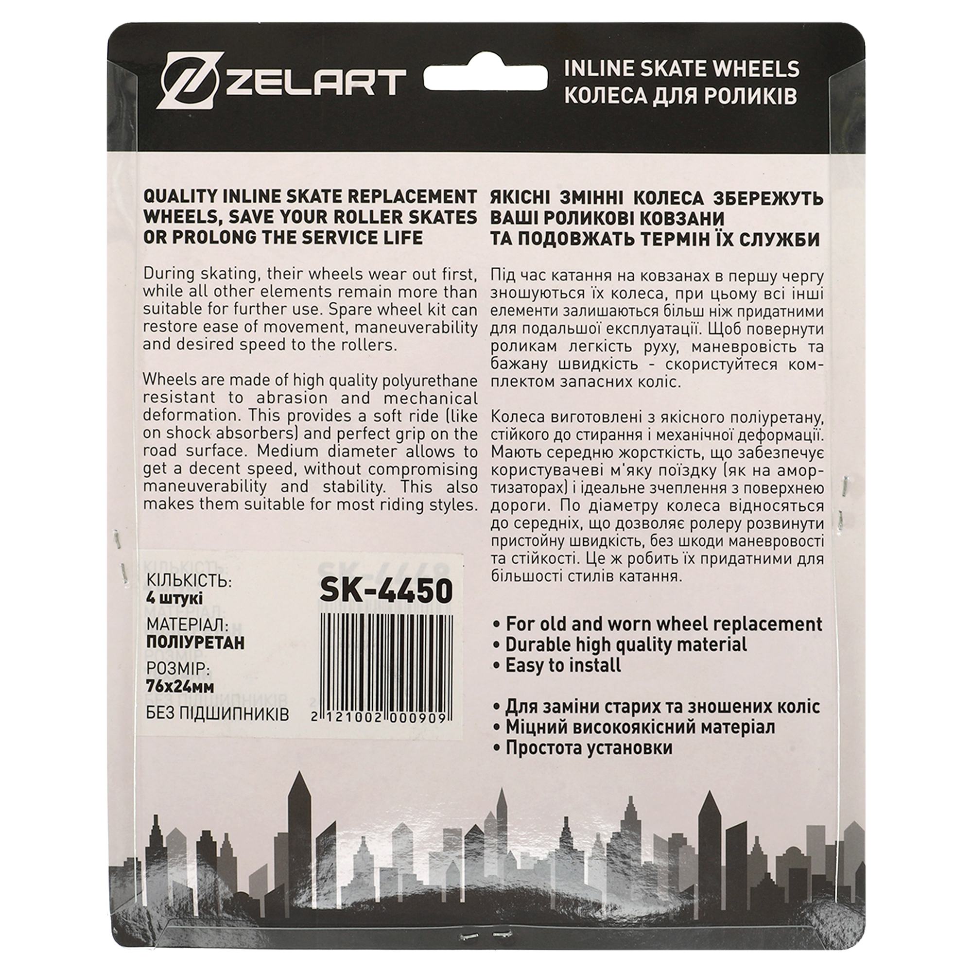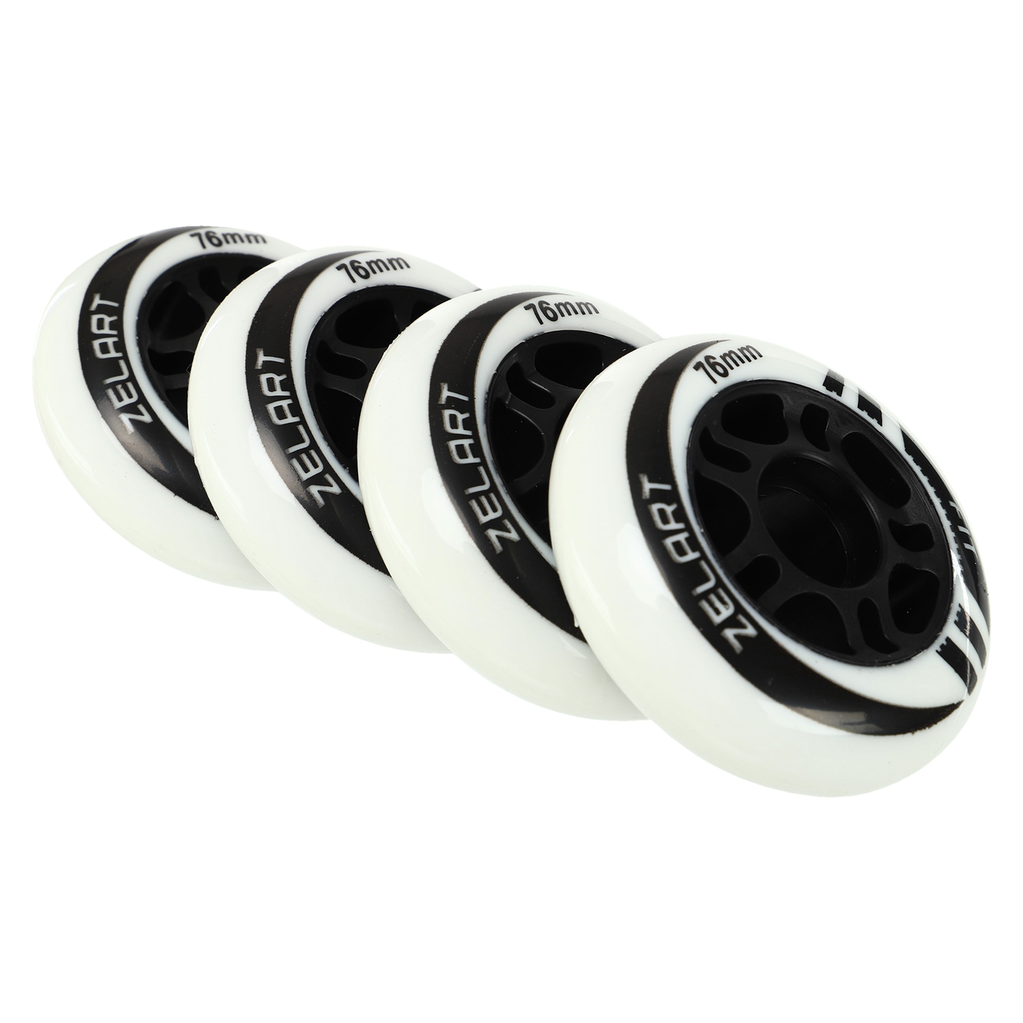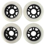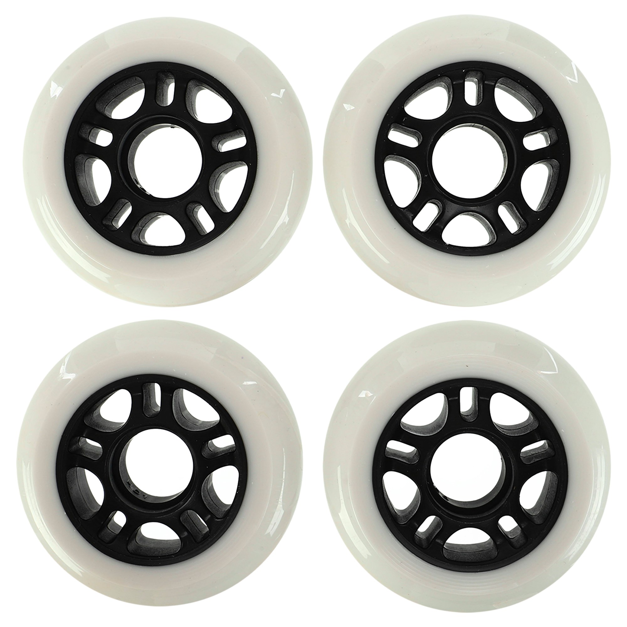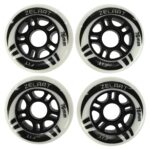 Колёса изготовлены из качественного полиуретана, устойчивого к истиранию и механической деформации. Их высокие эксплуатационные показатели обусловлены оптимальной жёсткостью – 82А. Это обеспечивает пользователю мягкую поездку (как на амортизаторах) и идеальное сцепление с поверхностью дороги. По диаметру колёса относятся к средним, что позволяет роллеру развить приличную скорость, без ущерба маневренности и устойчивости. Это же делает их пригодными для большинства стилей катания. Посадочное место для подшипников в ступицах имеет стандартные размеры, поэтому колёса подходят для большинства роликов, представленных на рынке.