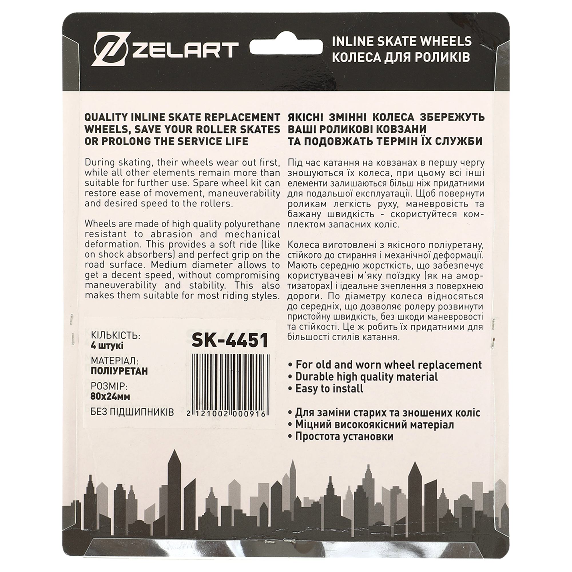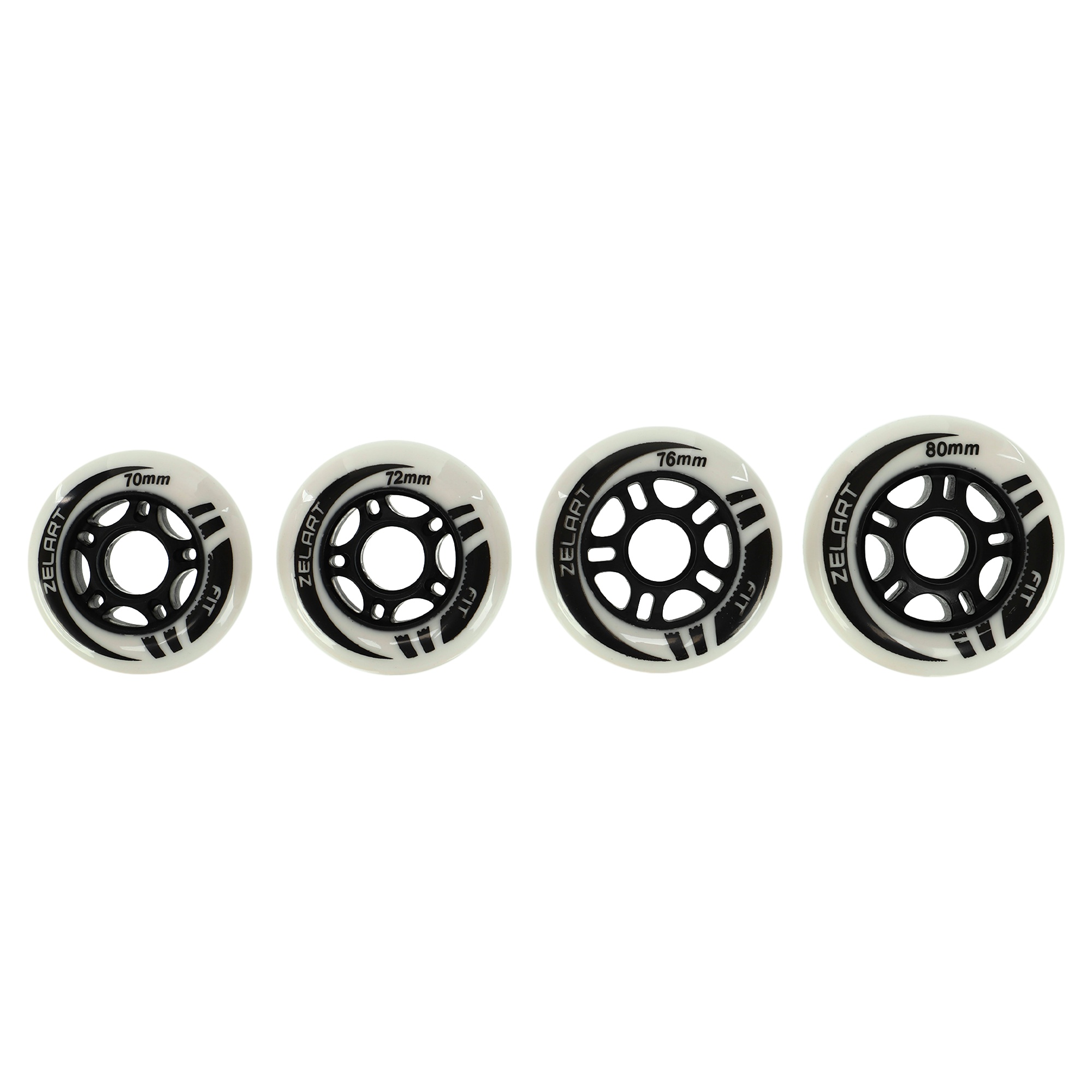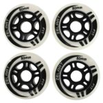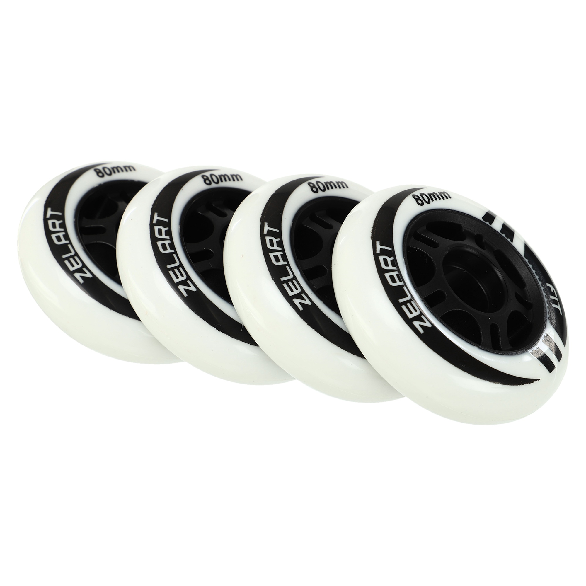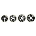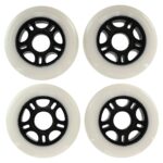 Колёса изготовлены из качественного полиуретана, устойчивого к истиранию и механической деформации. Их высокие эксплуатационные показатели обусловлены оптимальной жёсткостью – 82А. Это обеспечивает пользователю мягкую поездку (как на амортизаторах) и идеальное сцепление с поверхностью дороги. По диаметру колёса относятся к средним, что позволяет роллеру развить приличную скорость, без ущерба маневренности и устойчивости. Это же делает их пригодными для большинства стилей катания. Посадочное место для подшипников в ступицах имеет стандартные размеры, поэтому колёса подходят для большинства роликов, представленных на рынке.