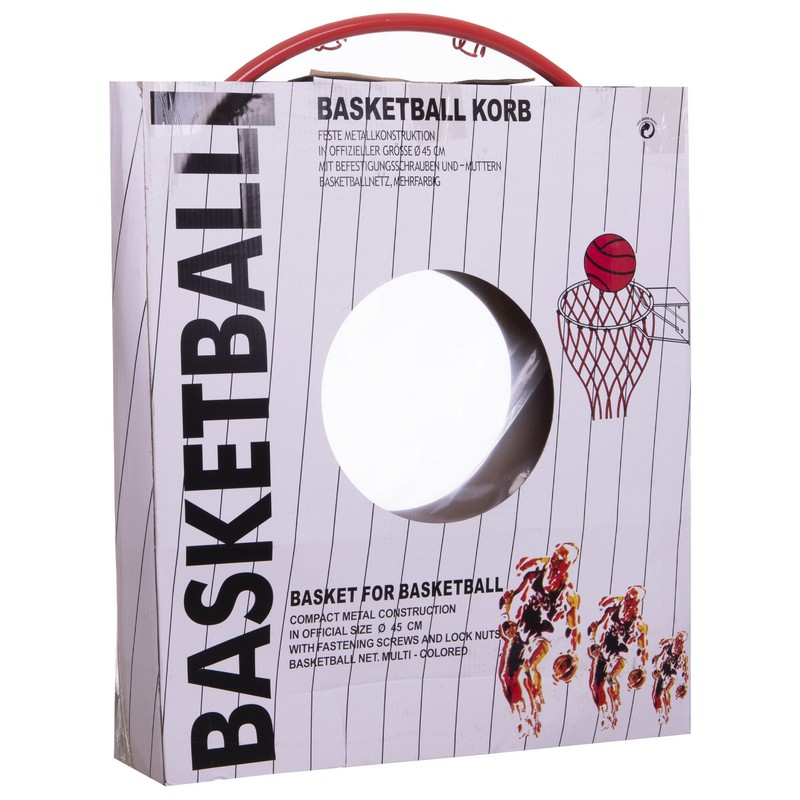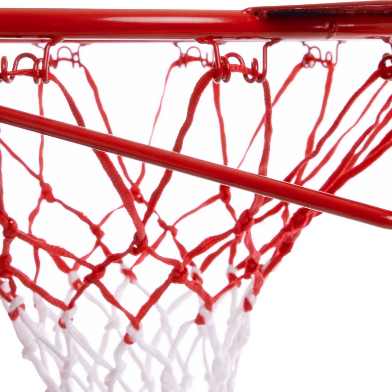 Изготовленная из металла баскетбольная корзина имеет диаметр 44,5 см и может использоваться как на улице, так и в помещении. Этот универсальный спортивный инвентарь отлично подойдёт для тренировок взрослых и детских любительских команд. Металлическое кольцо изготовлено из трубы диаметром 12 мм, что гарантирует высокую прочность конструкции. Корзина укомплектована сеткой из нейлона с двухцветным дизайном. Отличное качество сетки и устойчивость материала к воздействию влаги позволяют использовать корзину на улице. Для крепления к щитку используются болты — в конструкции корзины предусмотрены четыре отверстия для фиксации.