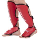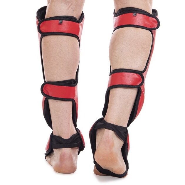 Защита голени и стопы предназначена для проведения тренировок и спаррингов. Модель с закрытым голеностопом, закрытыми пальцами и открытой пяткой. Предназначена для защиты ног от травм во время занятий единоборствами. Надежно защищает голень, лодыжку и подъем за счет специальных подкладок. Прочное крепление на качественных резинках и липучках, позволяют данному протектору плотно и крепко сидеть на голени и стопе. Обтянут специальной прочной искусственной кожей, которая служит очень долгое время.