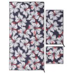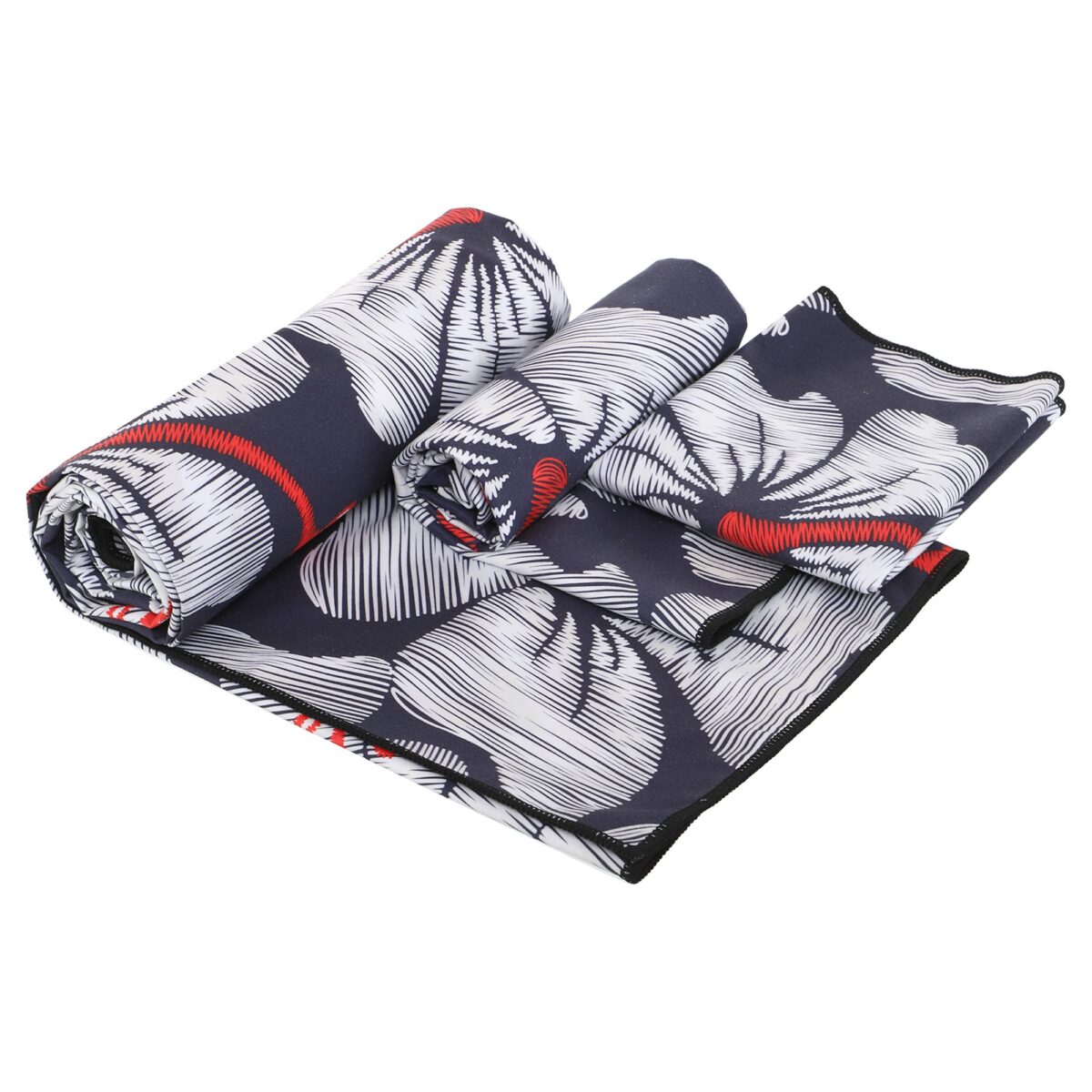 Набор FLOWER BEACH TOWEL — лучшее решение для отдыха или дальних поездок. Он состоит из трех полотенец разного размера. Все полотенца изготовлены из микрофибры. Синтетическая ткань хорошо поглощает и испаряет влагу. Полотенца быстро сохнут после использования или стирки.