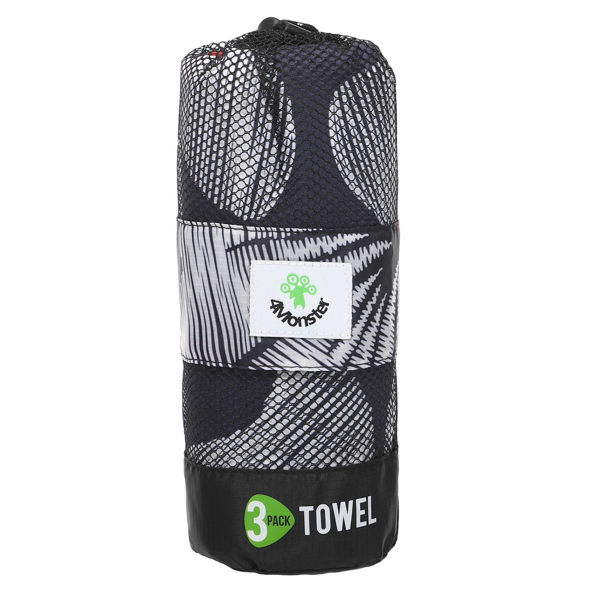 Набор комплектуется небольшим чехлом из сетки. В него можно компактно упаковать все 3 полотенца. Изделия имеют привлекательный дизайн. Яркий принт расположен на обеих сторонах полотенца. Рисунок можно выбрать из нескольких вариантов.