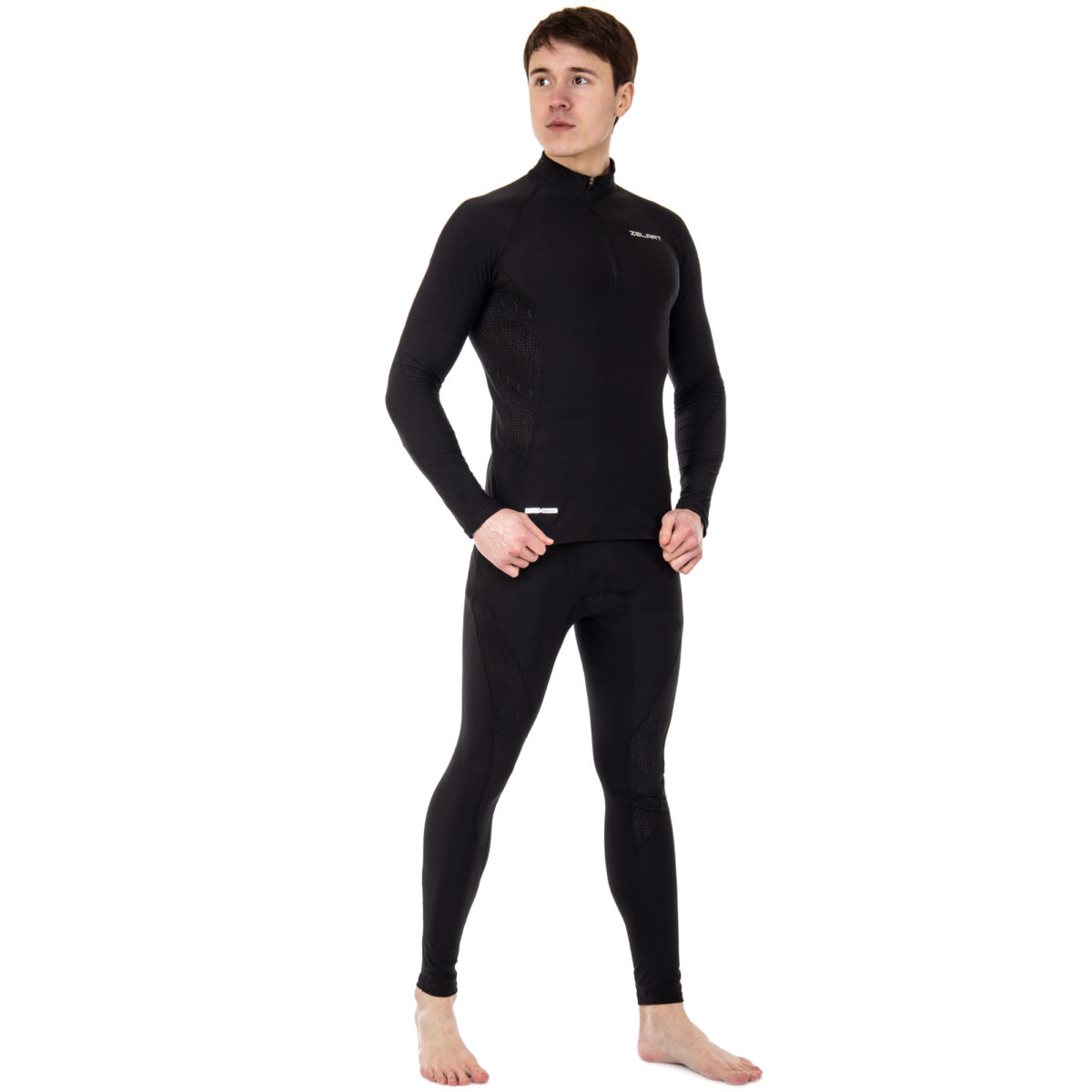 Комплект состоит из лонгслива с длинными рукавами и штанов. Их плотная посадка на теле обеспечивает эффективное удержание тепла и предотвращает переохлаждение.