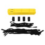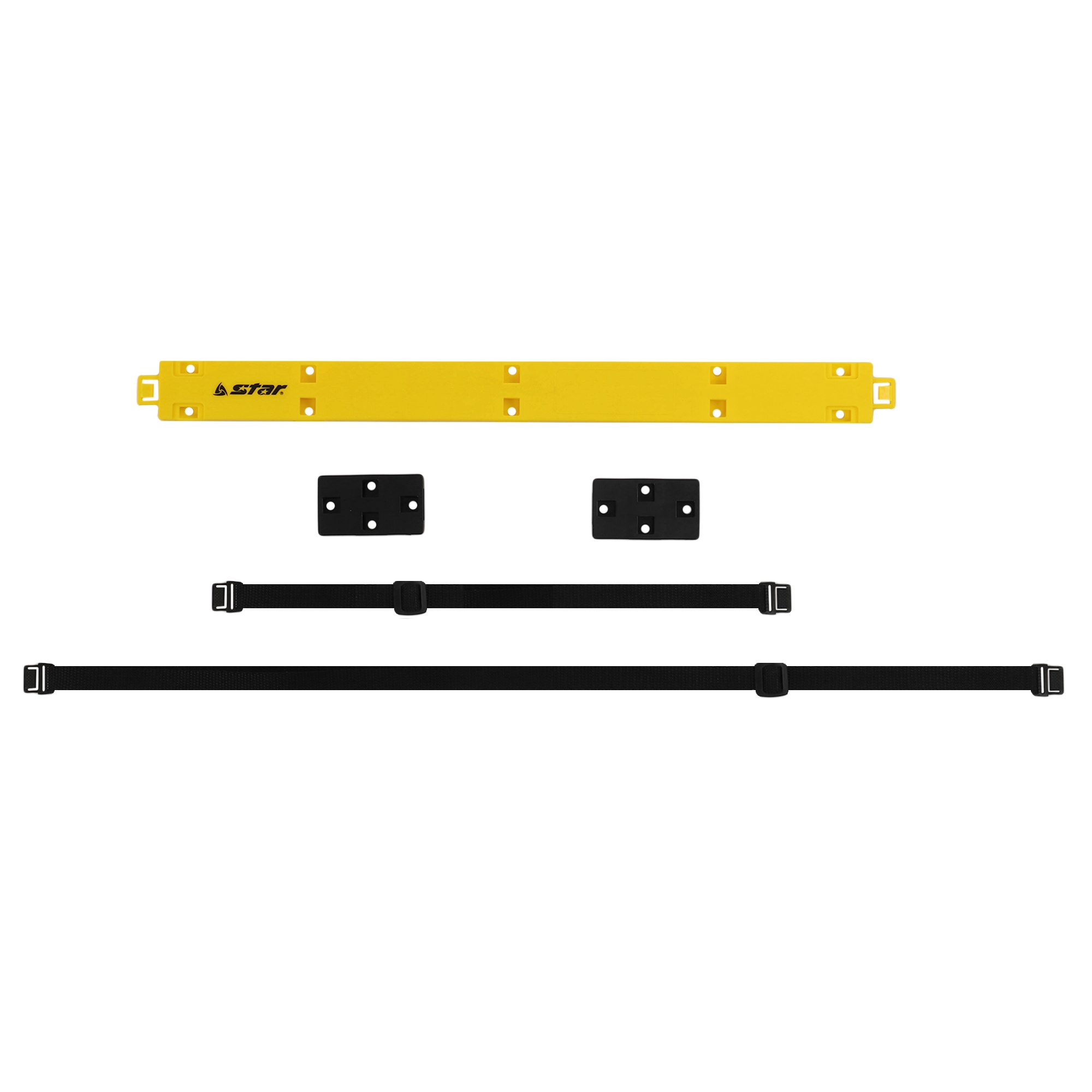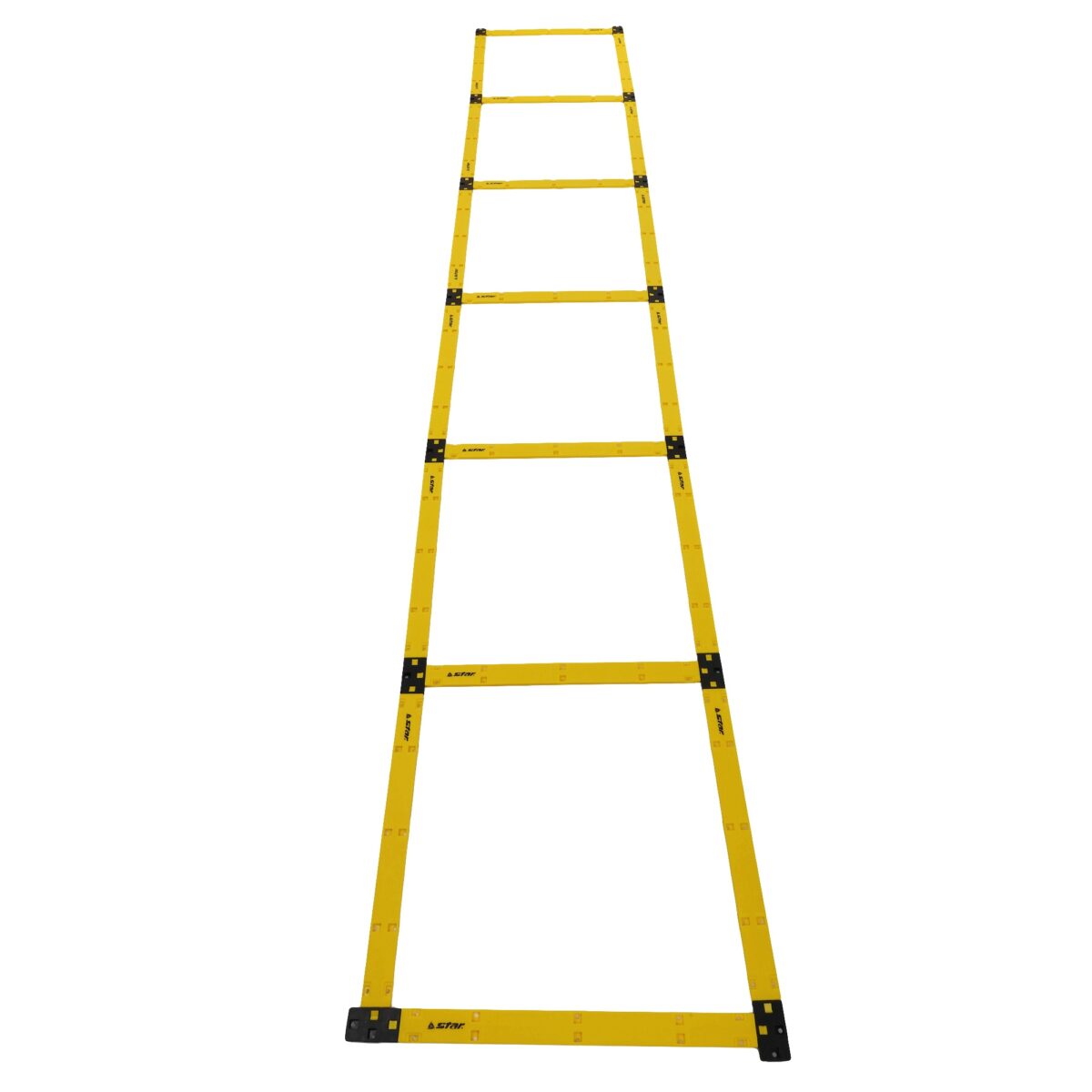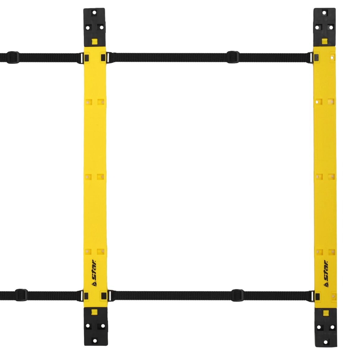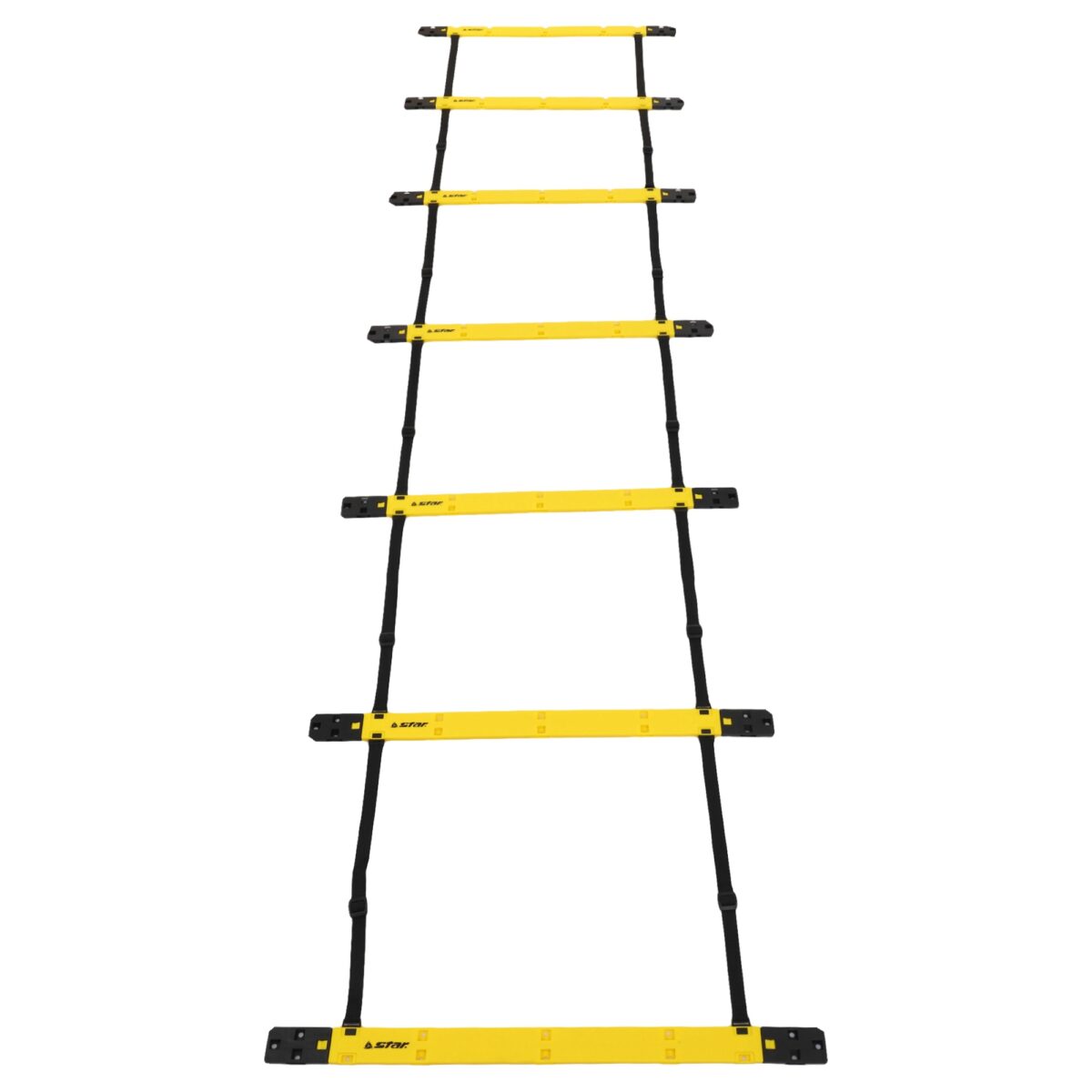 Координационная лестница от бренда STAR — это незаменимый тренажёр для футболистов и представителей других игровых видов спорта, а также для спортсменов, которые желают развить скорость и координацию движений. Координационная лестница складывается до компактных размеров благодаря разборной конструкции. Разборная конструкция состоит из строп, на которые крепятся перекладины. Расстояние между пластиковыми перекладинами можно регулировать. Это позволяет усложнять упражнения в зависимости от уровня подготовленности спортсменов. Всего в комплекте 20 перекладин и аналогичное количество креплений к ним. Также в комплекте есть стропы длиной 110 см и 60 см, строп каждого вида — по 8 штук.