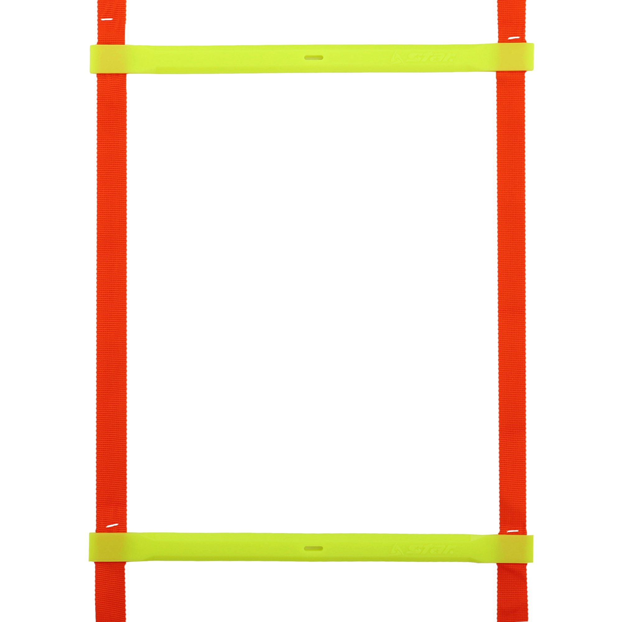 Координационная дорожка STAR выполнена в ярком цвете и имеет длину 5 м. На одинаковом расстоянии друг от друга на дорожке размещаются перекладины, всего их 8. Дорожку можно использовать в помещении и на улице. В случае применения в помещении, чтобы она не смещалась во время преодоления дистанции, её можно зафиксировать с помощью присосок к напольному покрытию. Если вы используете лестницу на траве, то для крепления к грунту производитель укомплектовал её 4 колышками. Перекладины выполнены из гибкого пластика и зафиксированы на тканевых стропах. Конструкцию можно сложить до компактного размера и поместить в сумку из комплекта.