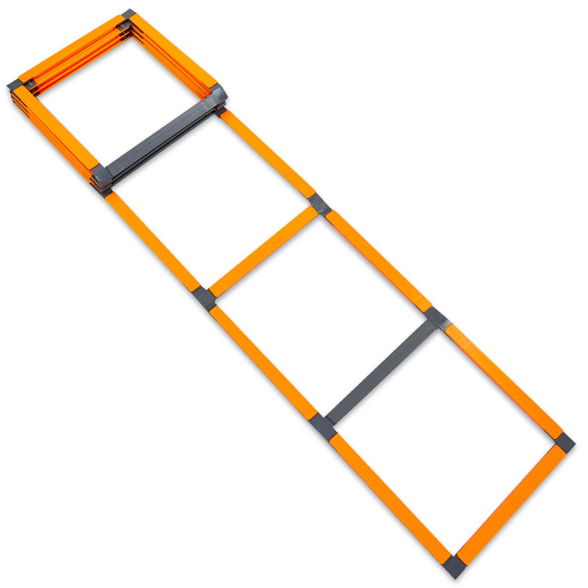 Компактная и лёгкая координационная лестница с шириной перекладин 51 см и длиной 5,5 м. Координационную лестницу такого размера можно легко переносить. Она не занимает много места при хранении и легко устанавливается на любом тренировочном пространстве. Её можно использовать как на улице, так и в помещении. Координационная дорожка представляет собой 10 перекладин, размещённых на одинаковом удалении друг от друга. Контрастная расцветка изделия обеспечивает хорошую видимость во время прохождения лестницы, а прочный пластик гарантирует длительный срок службы спортивного инвентаря.