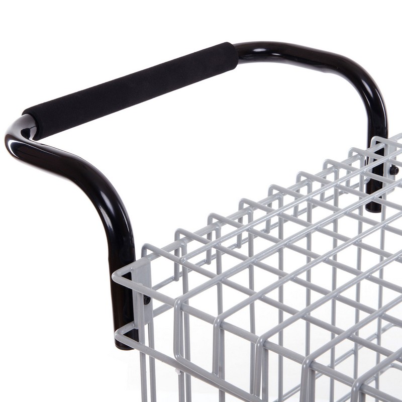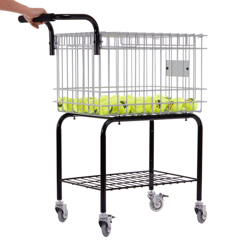 Корзина для теннисного инвентаря — важный атрибут для спортивного клуба с несколькими кортами. Изделие позволяет хранить и удобно транспортировать большое количество инвентаря, выполняет функцию корзины и тележки одновременно. На удобную полку можно положить ракетки или дополнительные аксессуары.