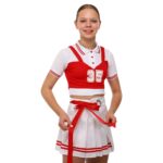 Костюм для чирлидинга изготовлен из синтетической ткани — полиэстера. Ткань пропускает воздух и не перегревает тело. Полиэстер отводит от тела влагу и не впитывает неприятные запахи. Преимущество синтетического материала — он не мнется после стирки.