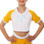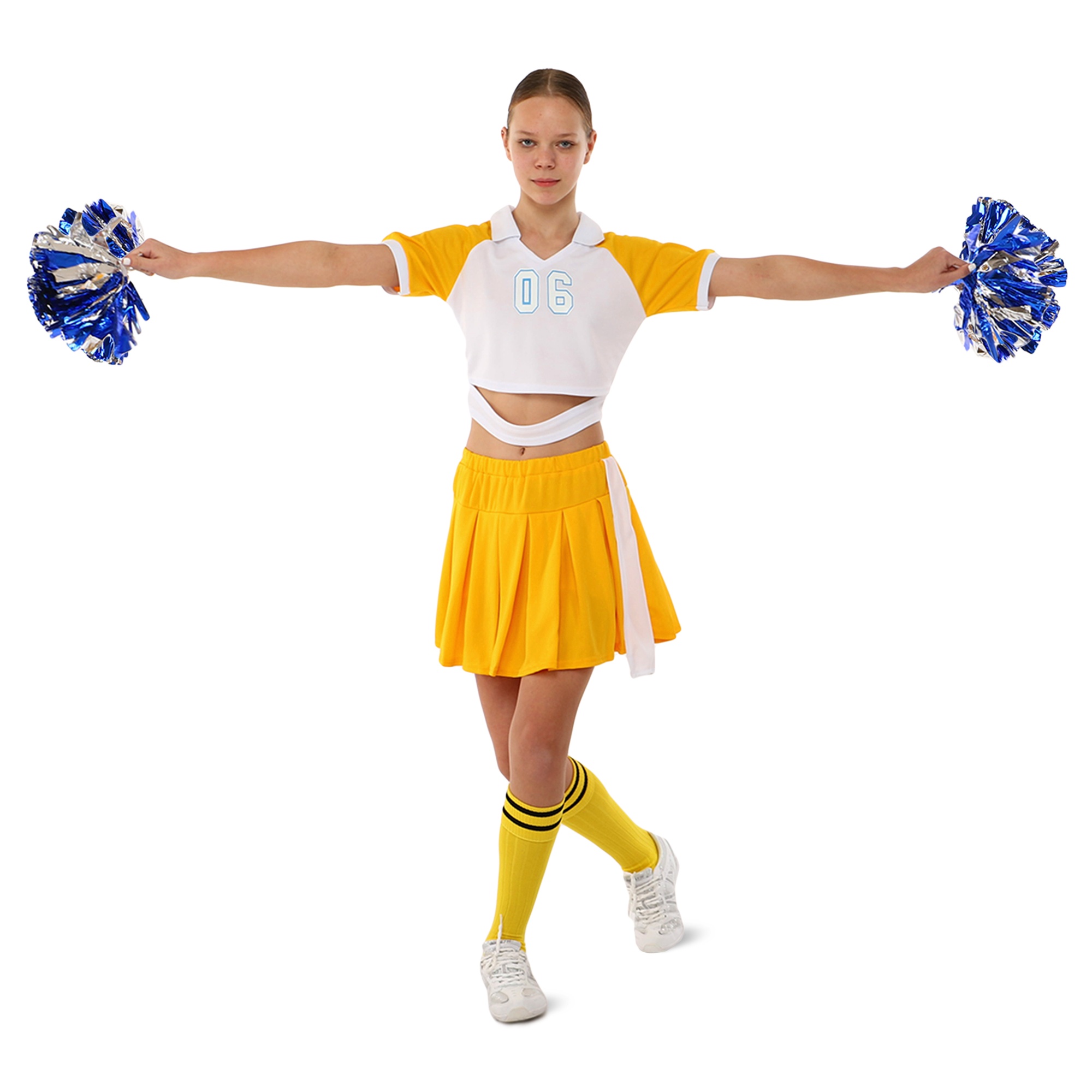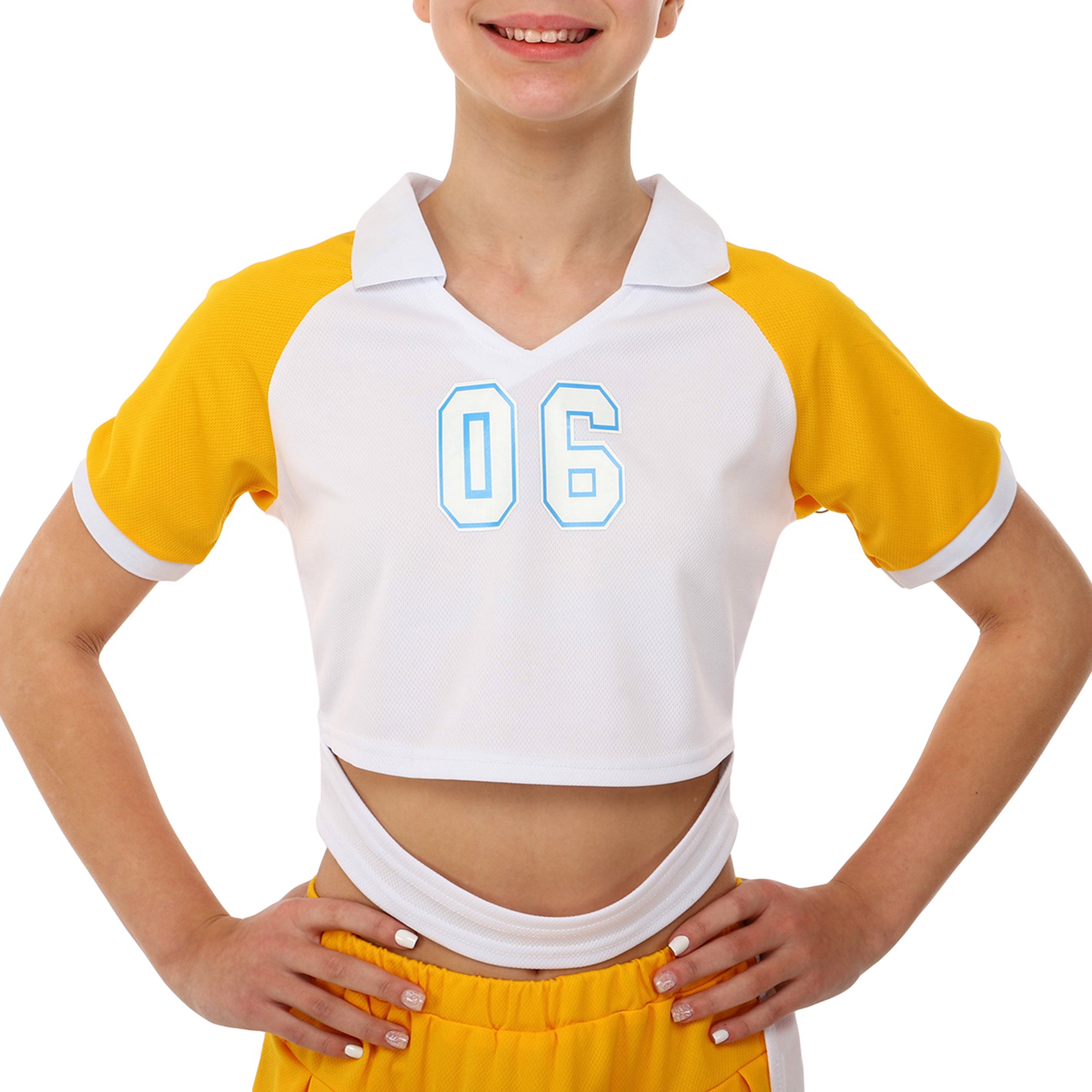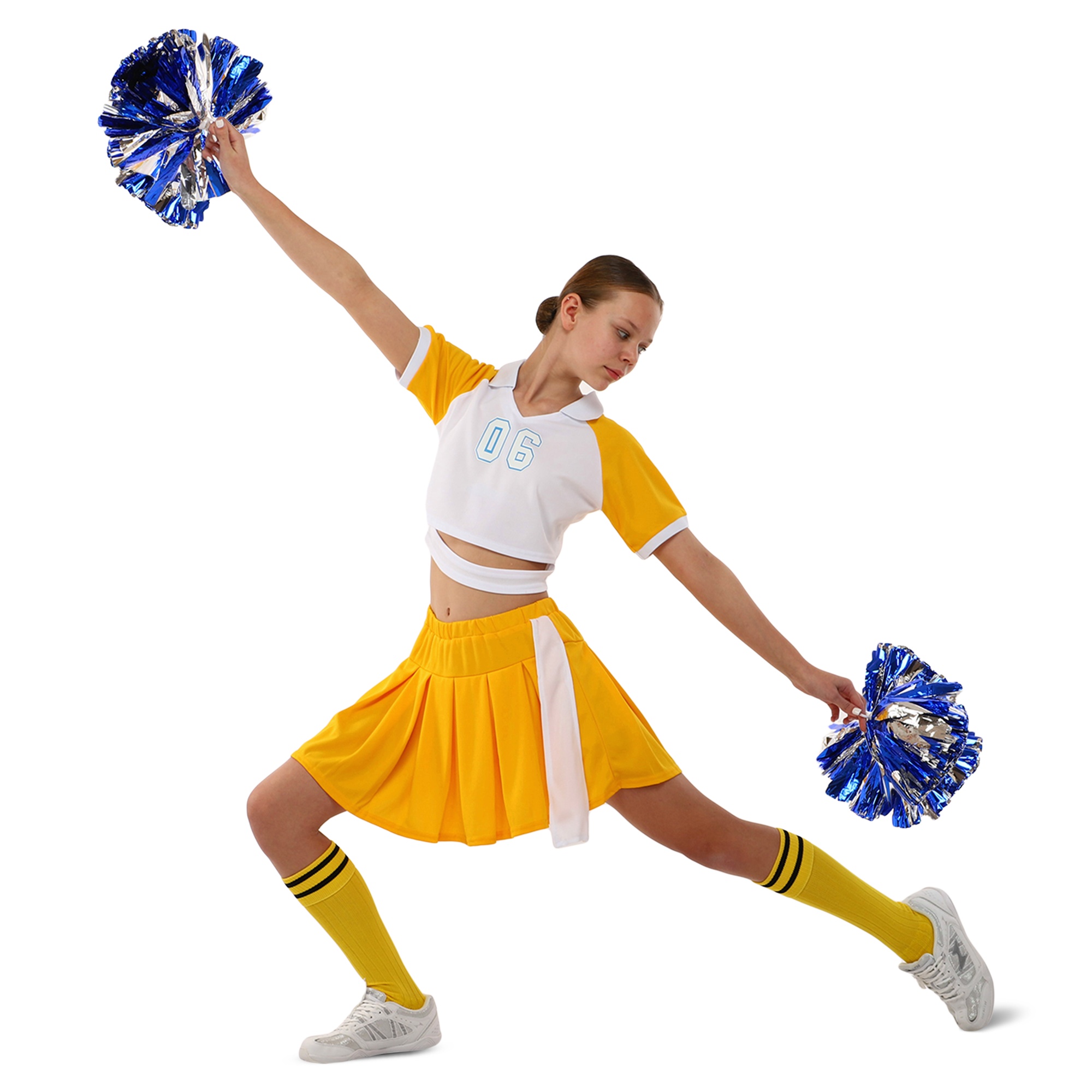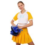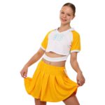Костюм для чирлидинга кроп-топ и плиссированная мини-юбка размер S-2XL желтый-белый