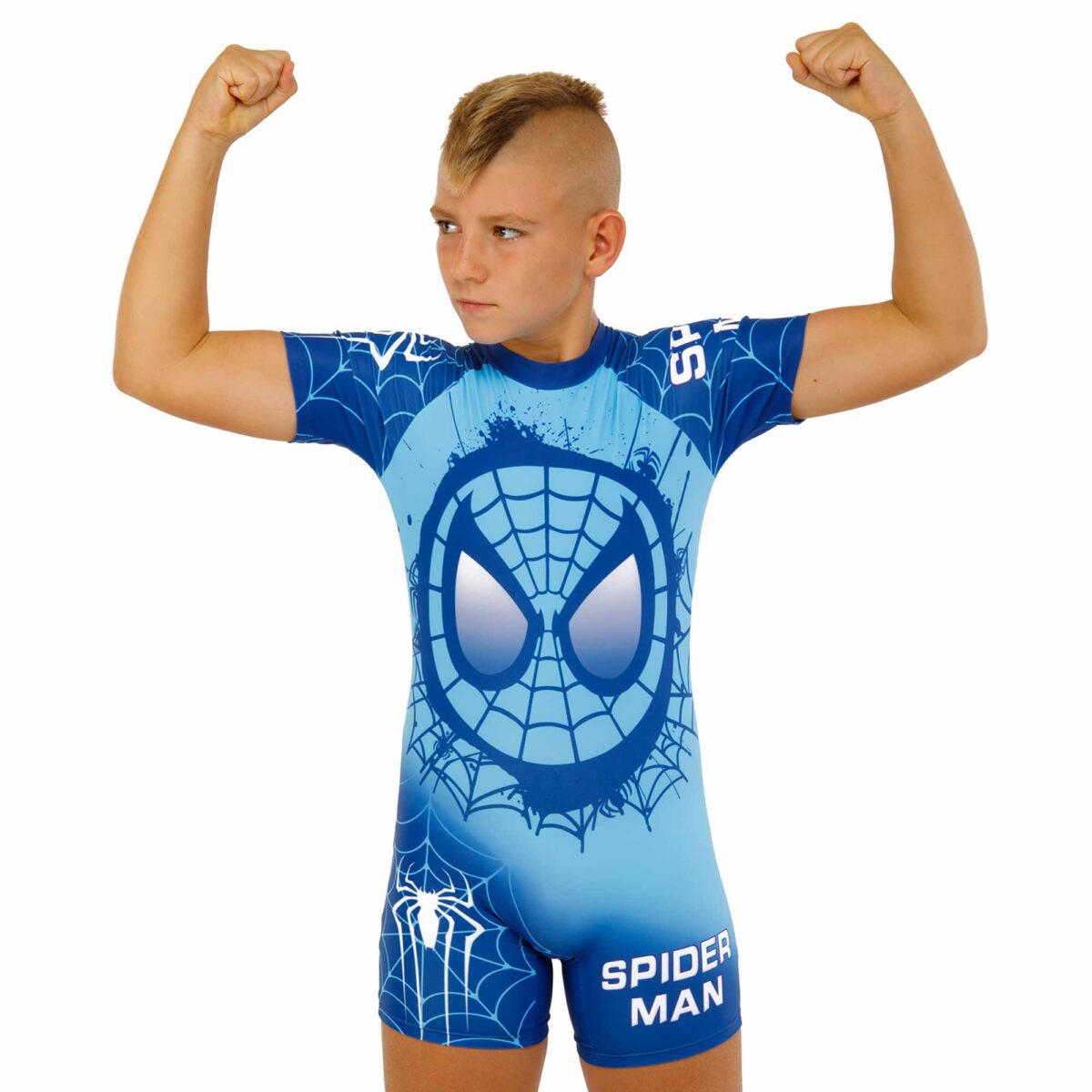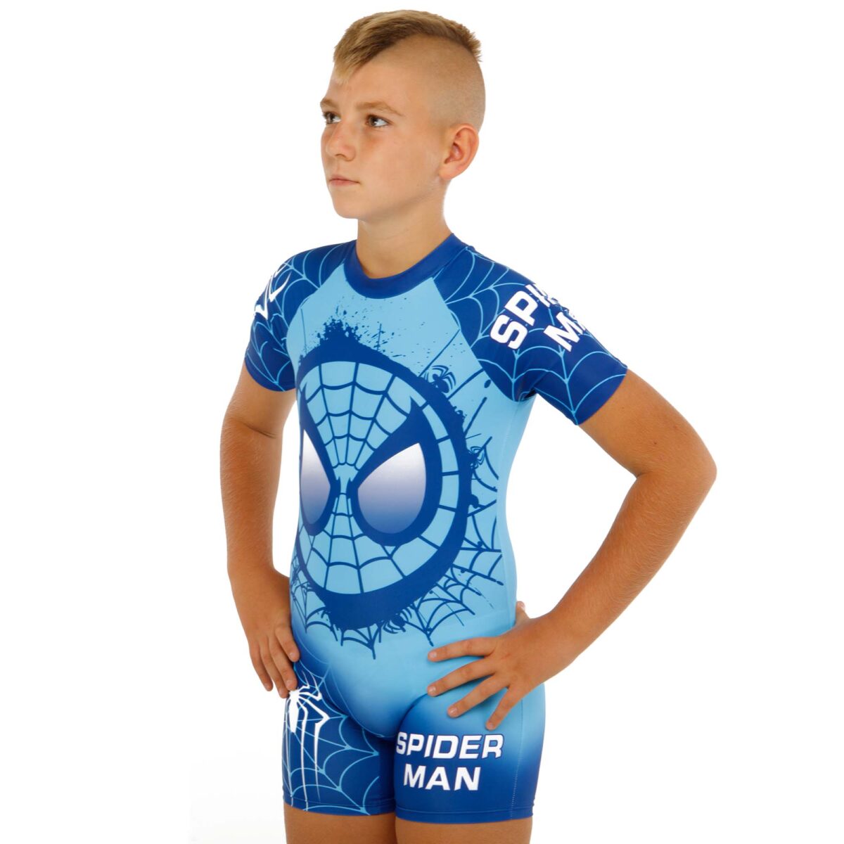 Костюм купальный солнцезащитный для мальчиков слитный с шапочкой Man M-XL синий-голубой