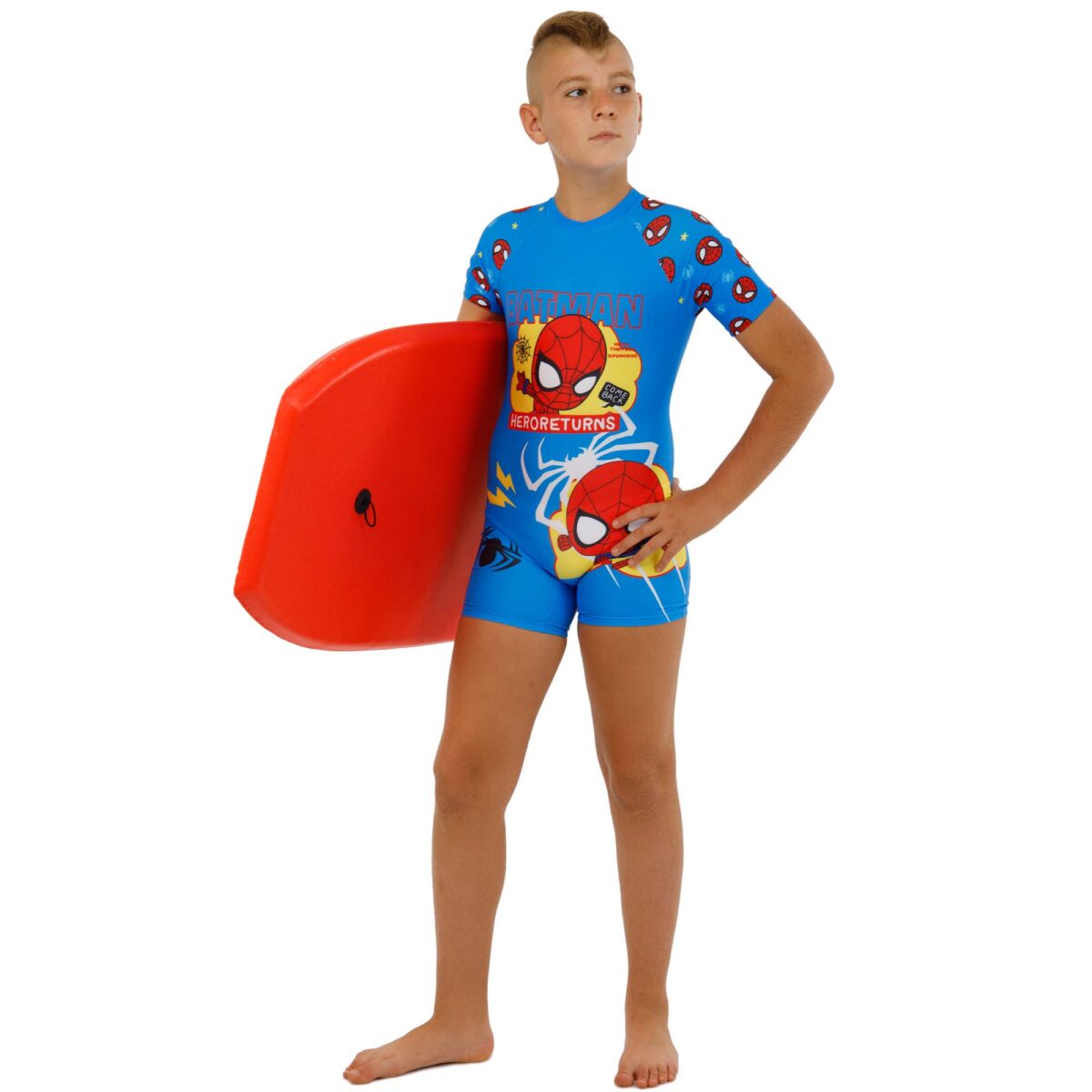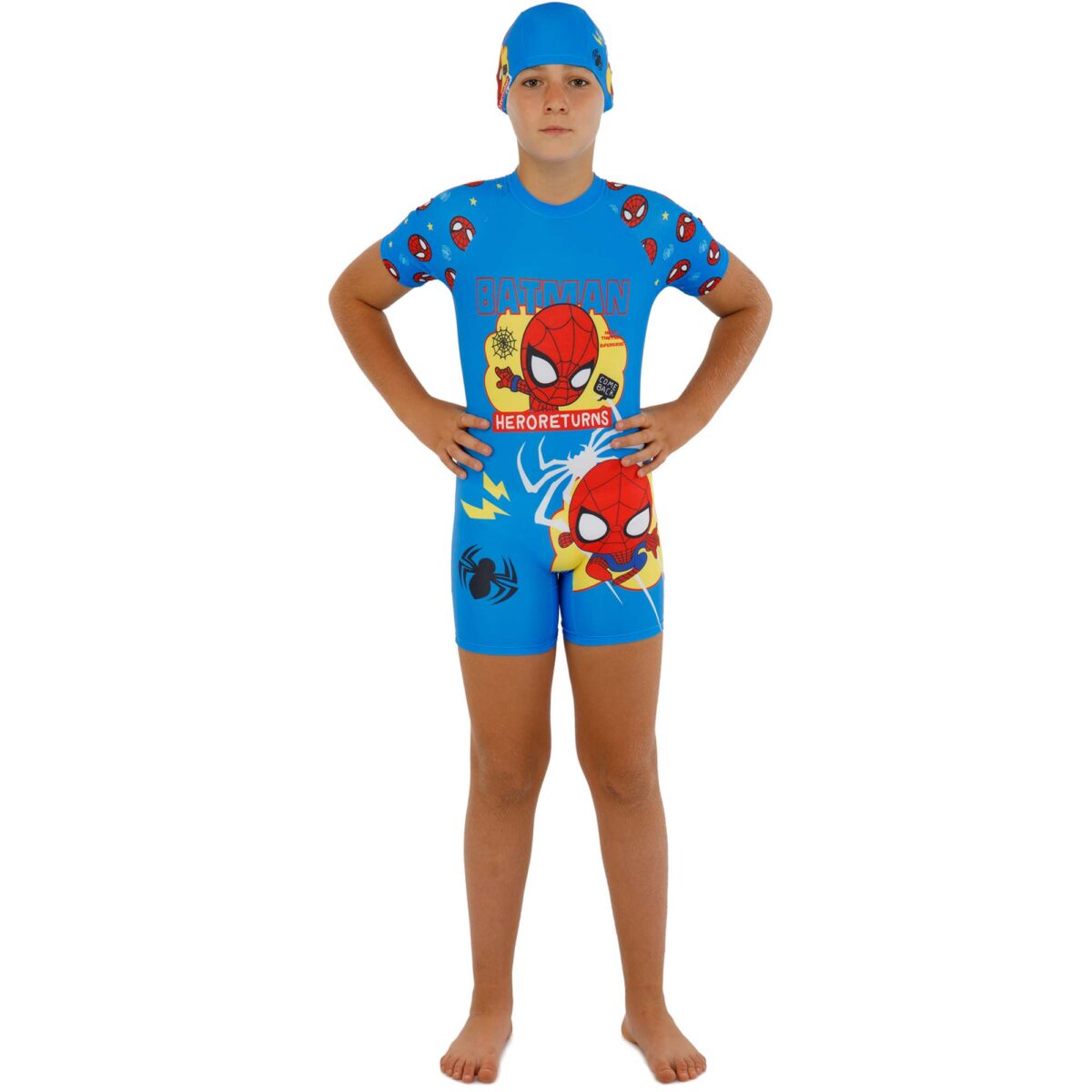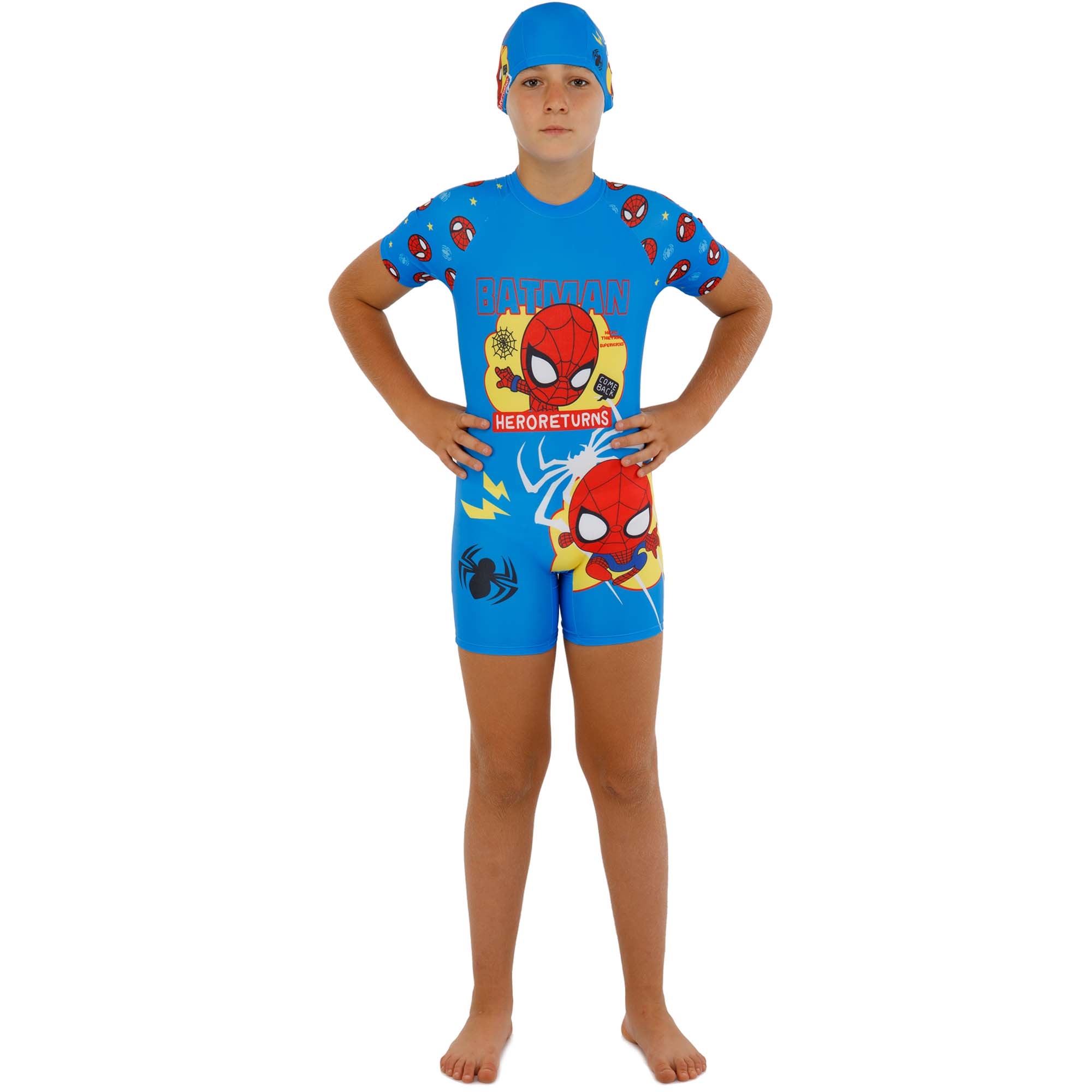 Слитный купальный костюм с солнцезащитной шапочкой разработан специально для активного и безопасного отдыха мальчиков на пляже, в бассейне, на открытых водоемах или в аквапарке. Этот костюм не только привлекает внимание ярким дизайном, но и обеспечивает максимальную защиту от вредных солнечных лучей.