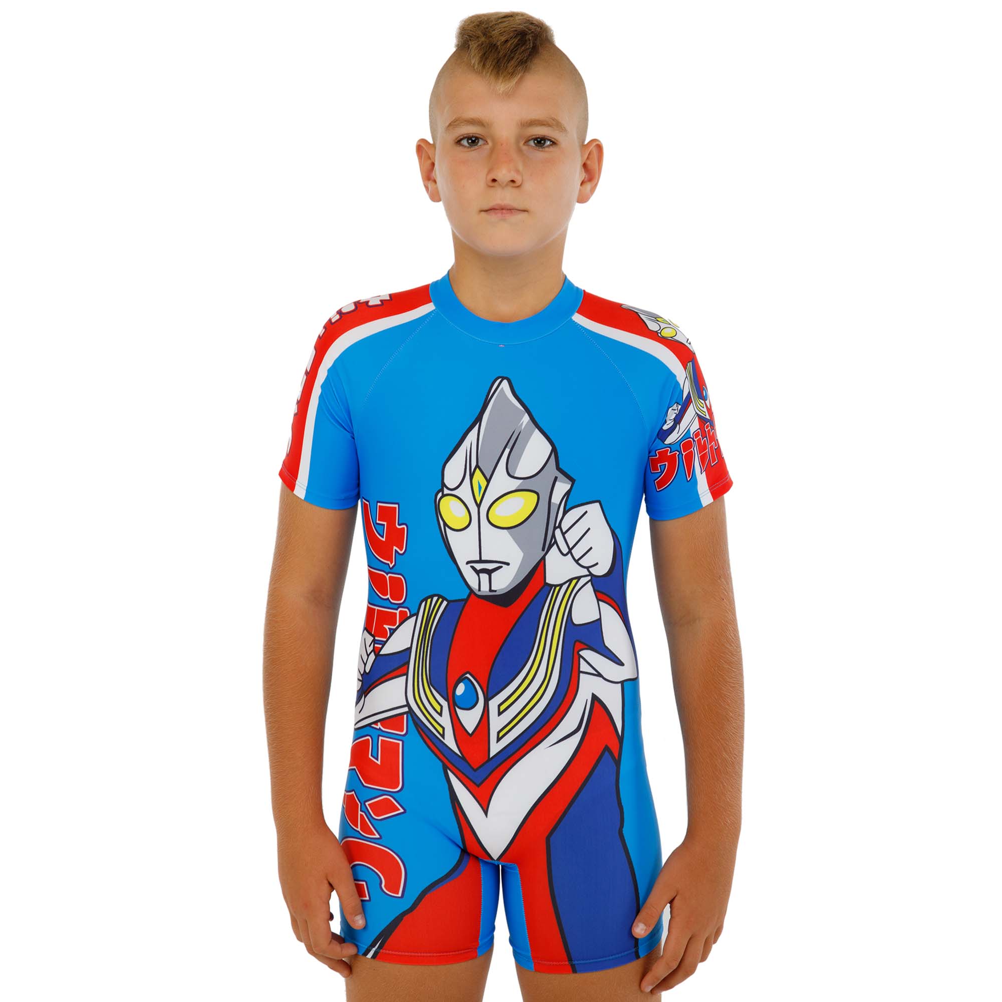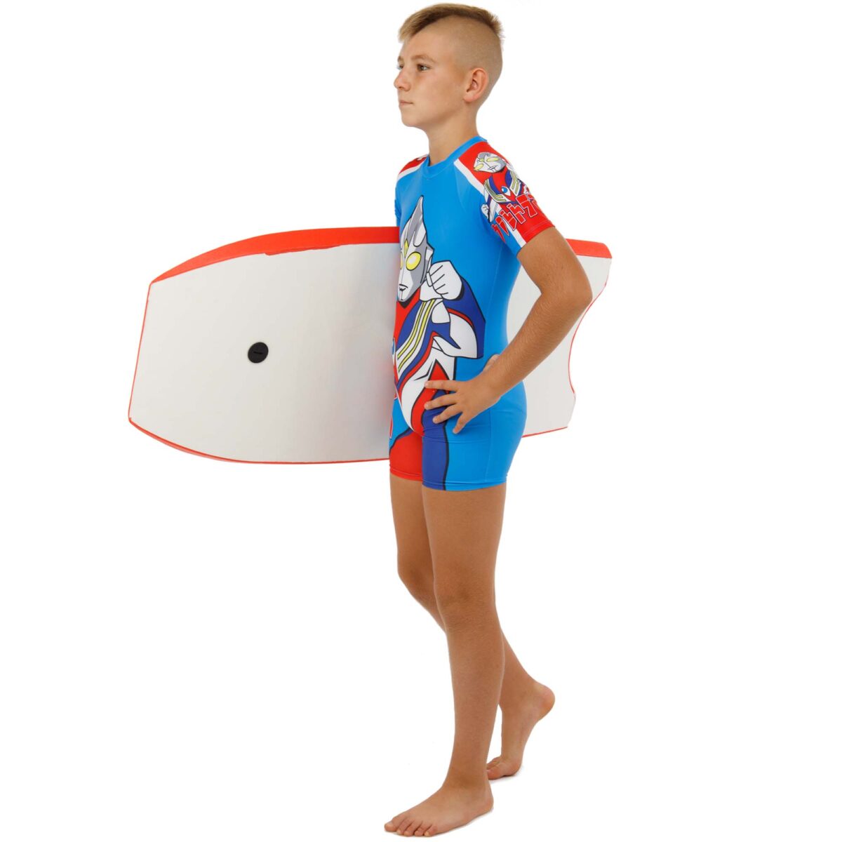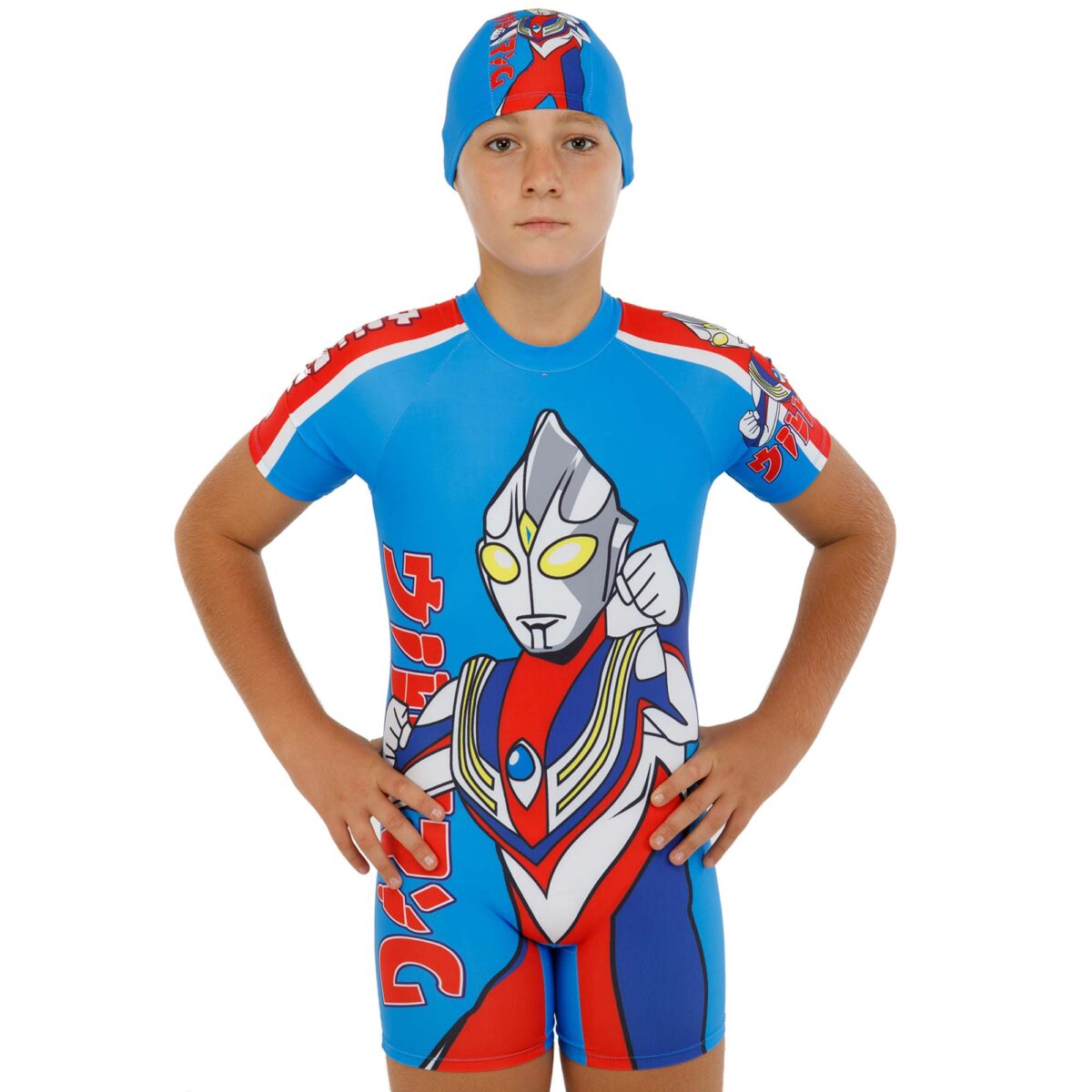 Костюм купальный солнцезащитный для мальчиков слитный с шапочкой Робот M-XL синий-красный