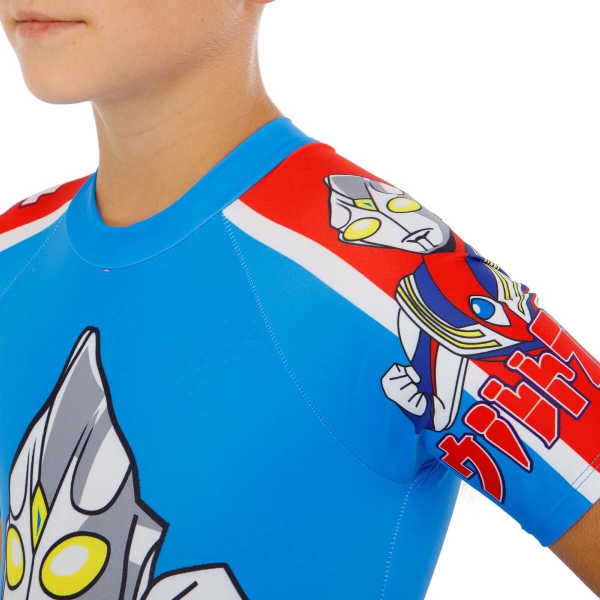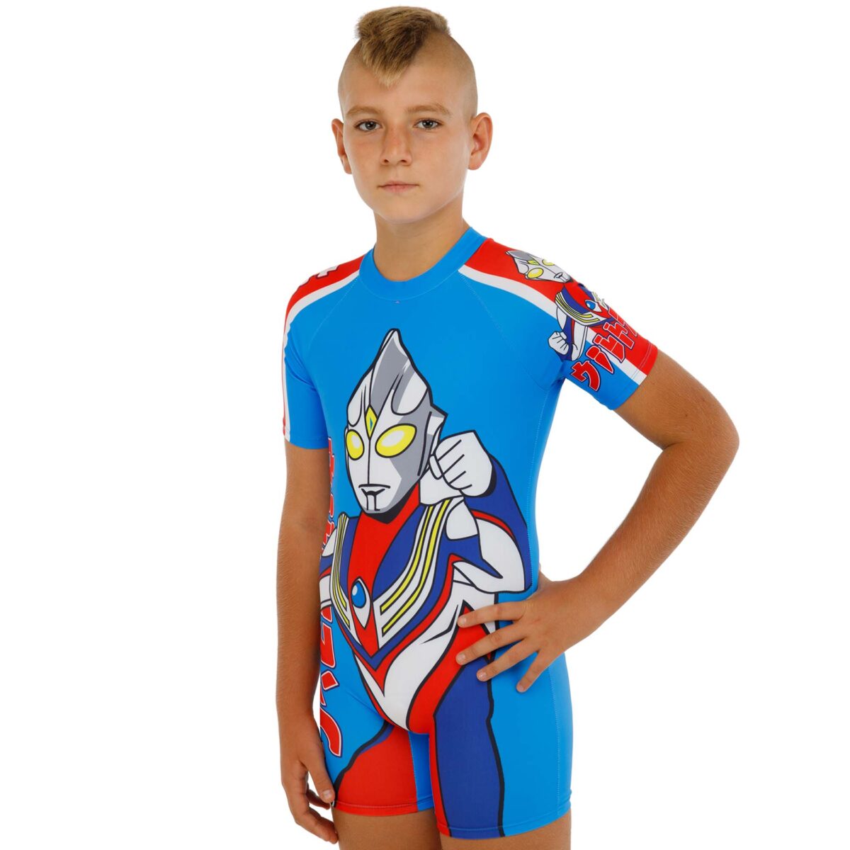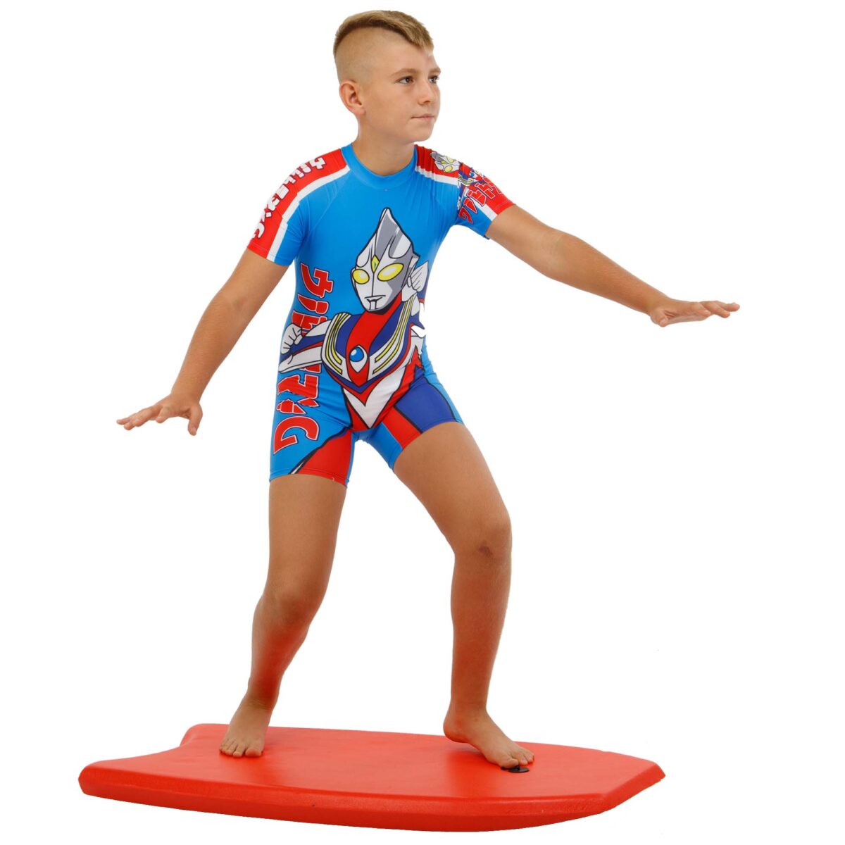 Костюм купальный солнцезащитный для мальчиков слитный с шапочкой Робот M-XL синий-красный