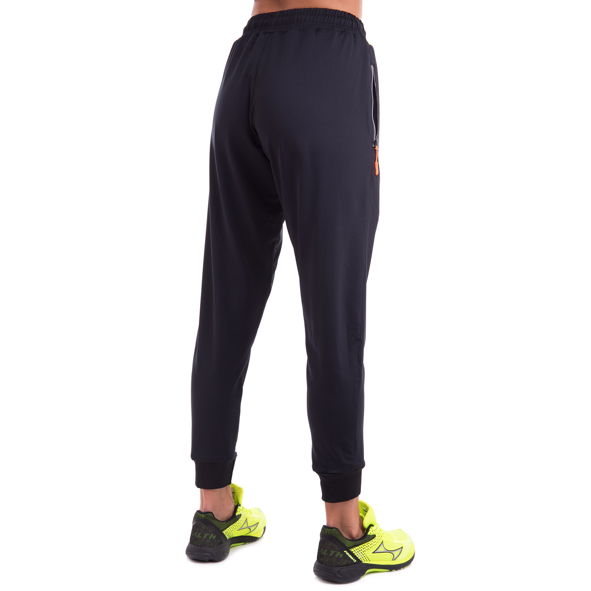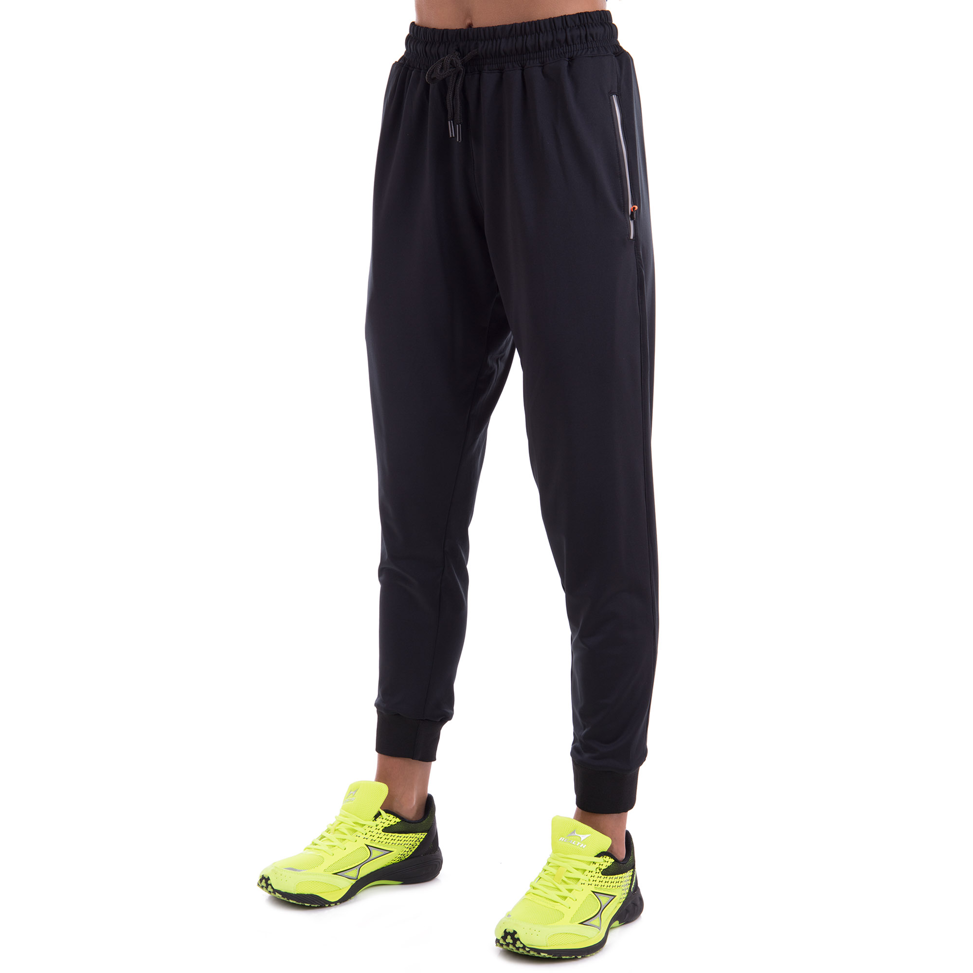Штаны на манжетах оснащены широкой резинкой и регулируемым шнурком, что позволяет идеально подогнать их по фигуре. Они также имеют два боковых кармана на молниях, что удобно для хранения мелких предметов, таких как ключи или мобильный телефон. Благодаря эргономичному крою, штаны не стесняют движений и обеспечивают максимальный комфорт даже при самых интенсивных тренировках.