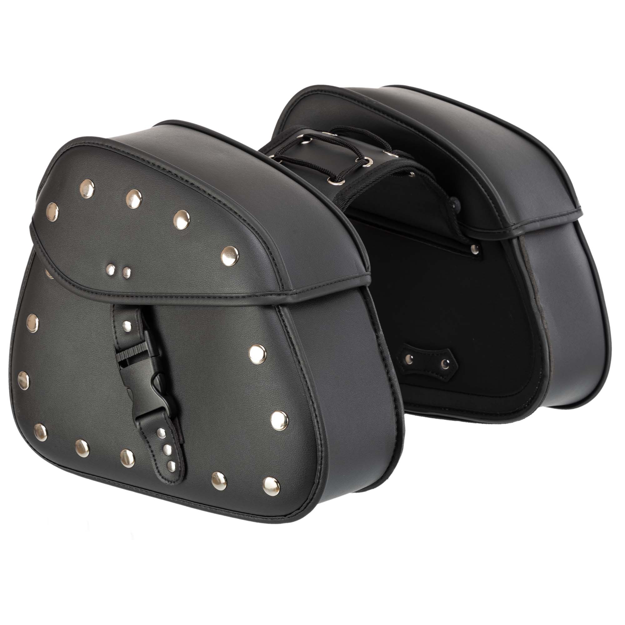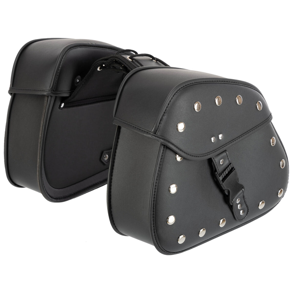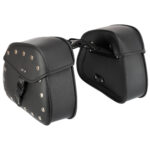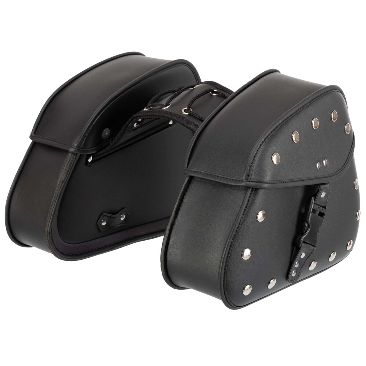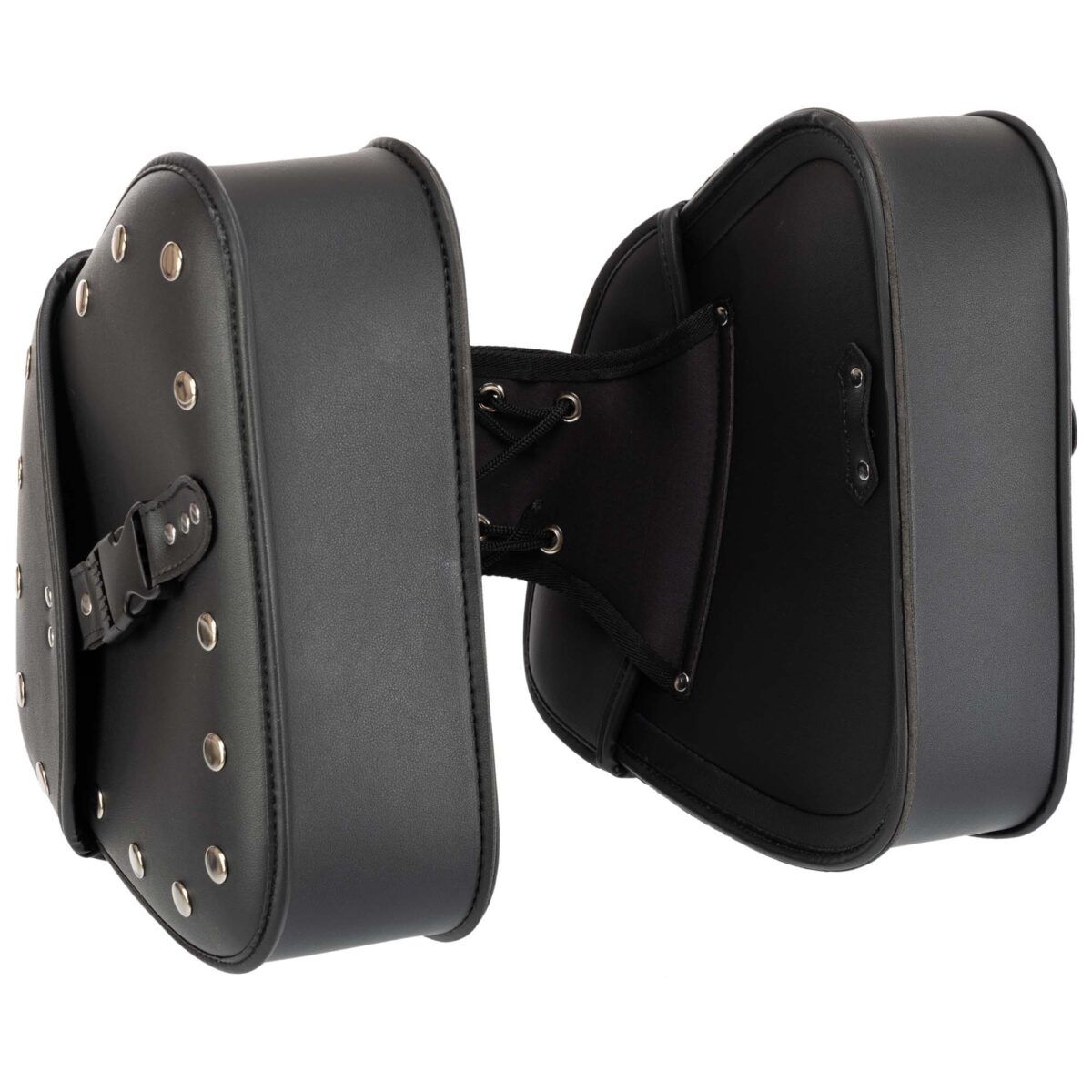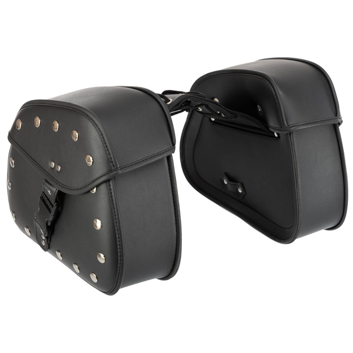 Размеры каждой сумки составляют 32x26x20x10 см, что делает их достаточно вместительными для хранения необходимых вещей. Декоративные металлические заклёпки, украшающие поверхность, подчёркивают стильный и брутальный дизайн, вдохновлённый мотоциклетной культурой. Регулируемые крепления обеспечивают надёжную фиксацию сумок на мотоцикле, предотвращая их смещение во время движения.
