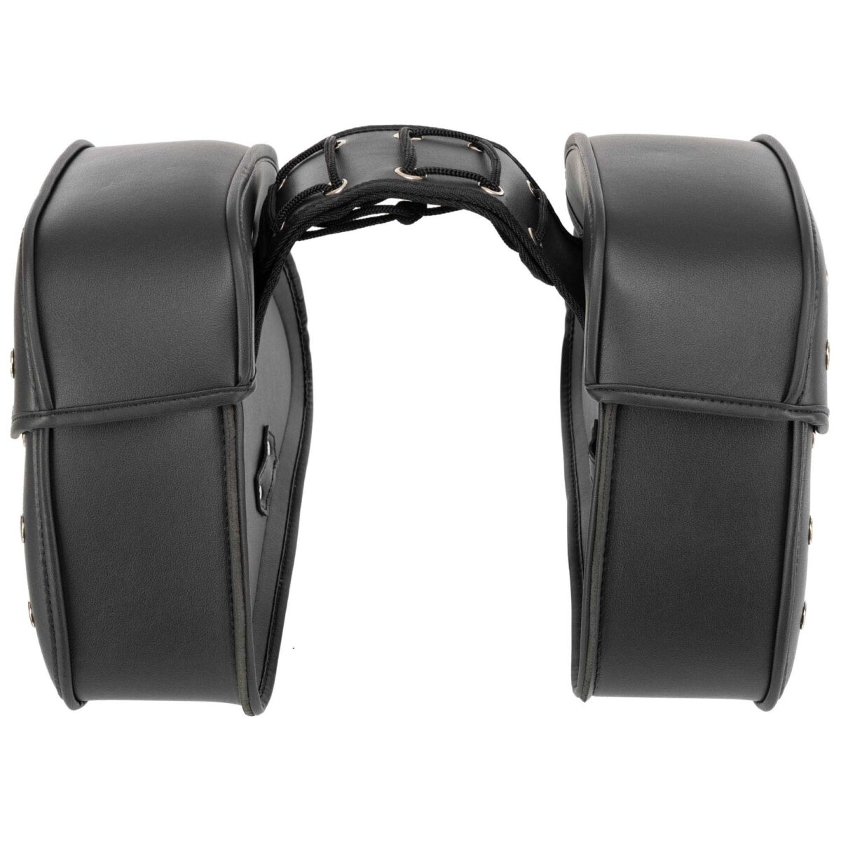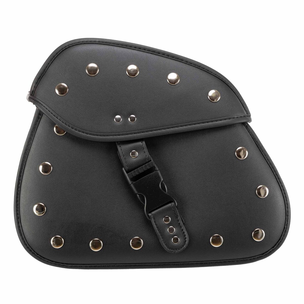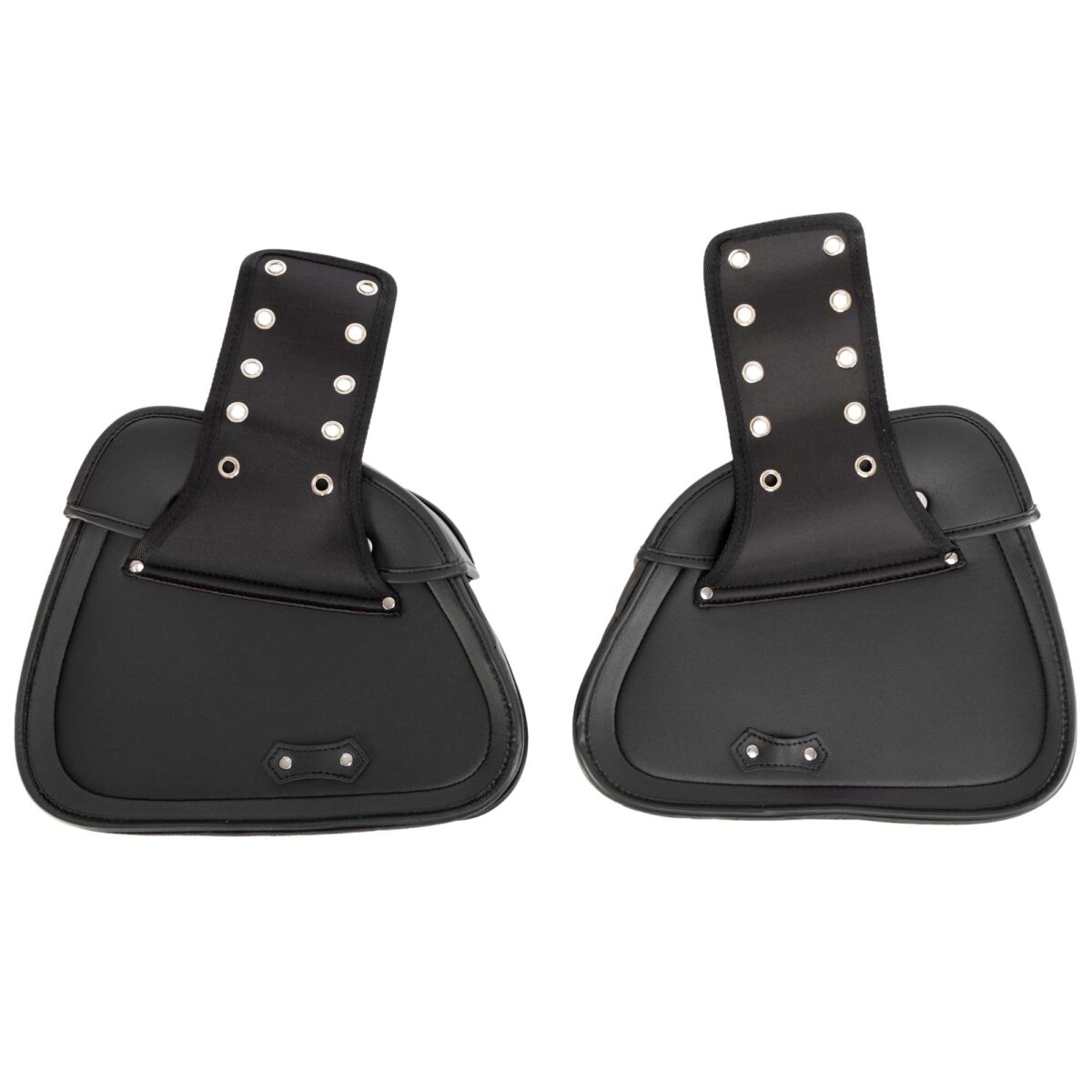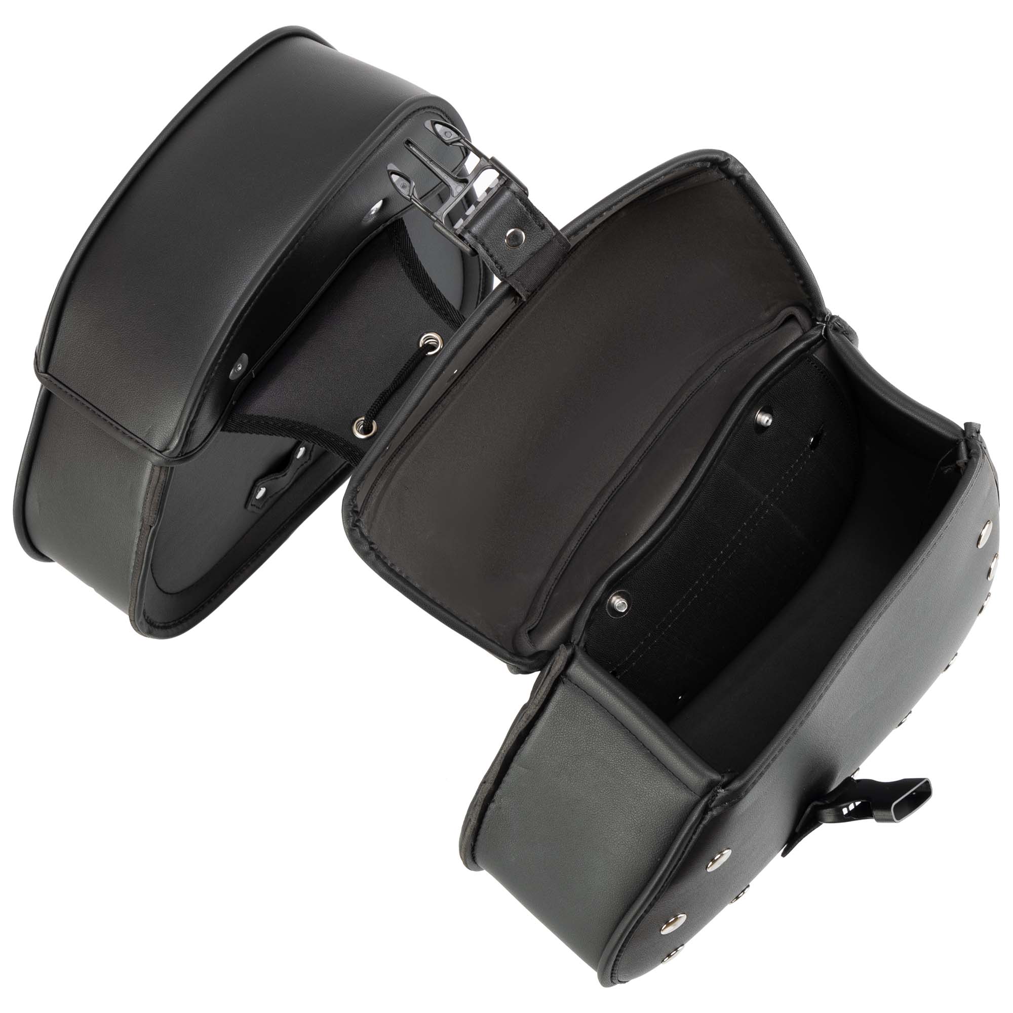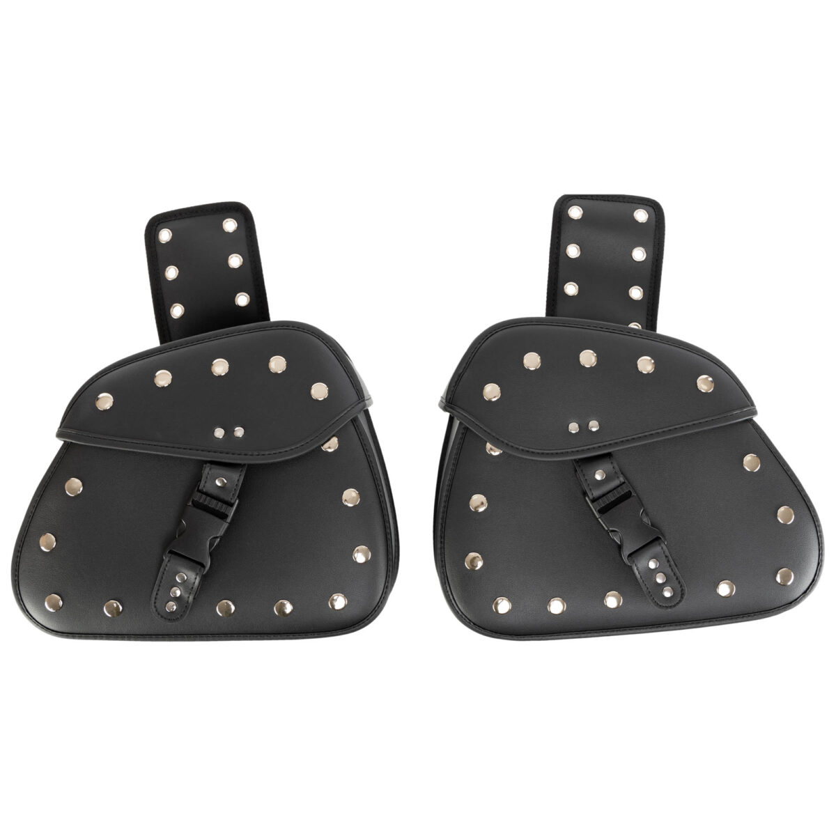 Размеры каждой сумки составляют 32x26x20x10 см, что делает их достаточно вместительными для хранения необходимых вещей. Декоративные металлические заклёпки, украшающие поверхность, подчёркивают стильный и брутальный дизайн, вдохновлённый мотоциклетной культурой. Регулируемые крепления обеспечивают надёжную фиксацию сумок на мотоцикле, предотвращая их смещение во время движения.