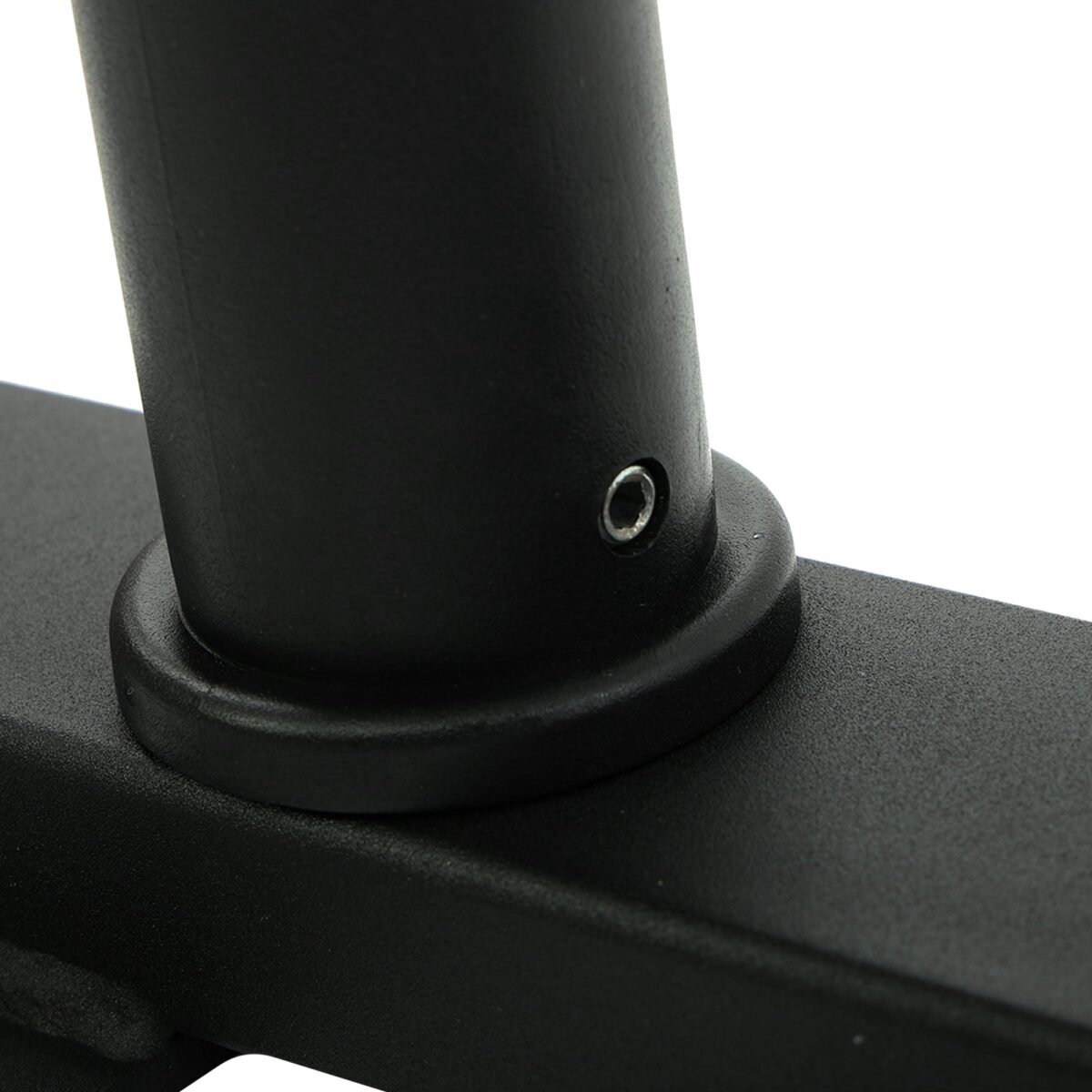 Стойка изготовлена из прочного металла. Ее можно использовать в профессиональном тренажерном зале, также она подойдет для комплектации домашнего зала. Рама стойки изготовлена из металлической полосы размером 12006010 мм. Такая толщина рамы обеспечивает высокую прочность изделия. Все элементы конструкции соединяются между собой методом бесшовной сварки.