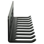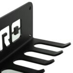 Кронштейн представляет собой металлическую пластину, на которой расположены крючки. И пластина, и крючки изготовлены из прочного и толстого листа стали и окрашены краской черного цвета. Порошковая краска хорошо держится на металле и препятствует его коррозии.