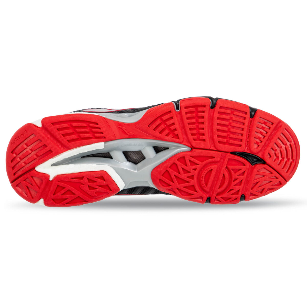 Подошва выполнена из высококачественной резины DURABILITY. Для облегчения вращательных поворотов в волейболе подошва имеет структуру ROTATION, которая обеспечивает комфортные ощущения при прыжках и боковых движениях. А для более динамичного перехода от удара к удару подошва оснащена системой гибких линий FLEXO в передней части стопы.