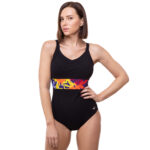 Слитный купальник выполнен из комбинации полиэстера и эластана, что обеспечивает идеальное сочетание мягкости, эластичности и долговечности. Материалы легко справляются с воздействием хлорированной воды и ультрафиолетового излучения, сохраняя яркость цветов и форму купальника на протяжении длительного времени.