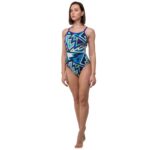 Слитный купальник выполнен из комбинации полиэстера и эластана, что обеспечивает идеальное сочетание мягкости, эластичности и долговечности. Материалы легко справляются с воздействием хлорированной воды и ультрафиолетового излучения, сохраняя яркость цветов и форму купальника на протяжении длительного времени.