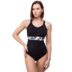 Купальник имеет красивый вырез, который выгодно подчеркивает декольте и добавляет женственности образу. Полуоткрытая спина с регулируемыми бретелями обеспечивает идеальную посадку и поддержку, что особенно важно при интенсивных тренировках или активных играх в воде.