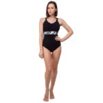 Слитный купальник выполнен из комбинации полиэстера и эластана, что обеспечивает идеальное сочетание мягкости, эластичности и долговечности. Материалы легко справляются с воздействием хлорированной воды и ультрафиолетового излучения, сохраняя яркость цветов и форму купальника на протяжении длительного времени.