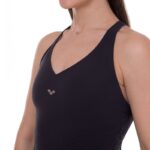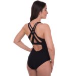 Особое внимание заслуживает спинка купальника с красивым переплетом, создающим эффект «крест-накрест». Эта деталь не только эстетически привлекательна, но и функциональна: переплетенные лямки надежно фиксируют купальник на теле, предотвращая смещение даже при интенсивных движениях. Такая конструкция обеспечивает свободу движений и комфорт во время плавания.