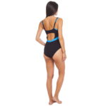 Купальник имеет красивый вырез, который выгодно подчеркивает декольте и добавляет женственности образу. Полуоткрытая спина с регулируемыми бретелями обеспечивает идеальную посадку и поддержку, что особенно важно при интенсивных тренировках или активных играх в воде.