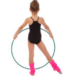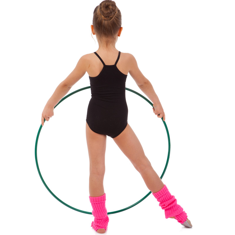 Гимнастический купальник изготовлен из эластичного материала имеет классический покрой с неглубокими вырезами спереди и сзади, и узкими бретелями. В нем нет резинок, которые бы оказывали неприятное давление на тело, и он не сковывает движений спортсменки.