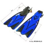 В изготовлении ласт использовано несколько материалов. Лопасть является твердой и прочной, в то время как галоша – более мягкая и эластичная. Задняя часть ласт для дайвинга оснащена специальным пяточный ремнем. Он выполняет фиксирующую функцию и позволяет регулировать степень фиксации. Галоша с открытой пяткой создана с учетом анатомических особенностей стопы, что обеспечивает дополнительный комфорт в использовании ласт.